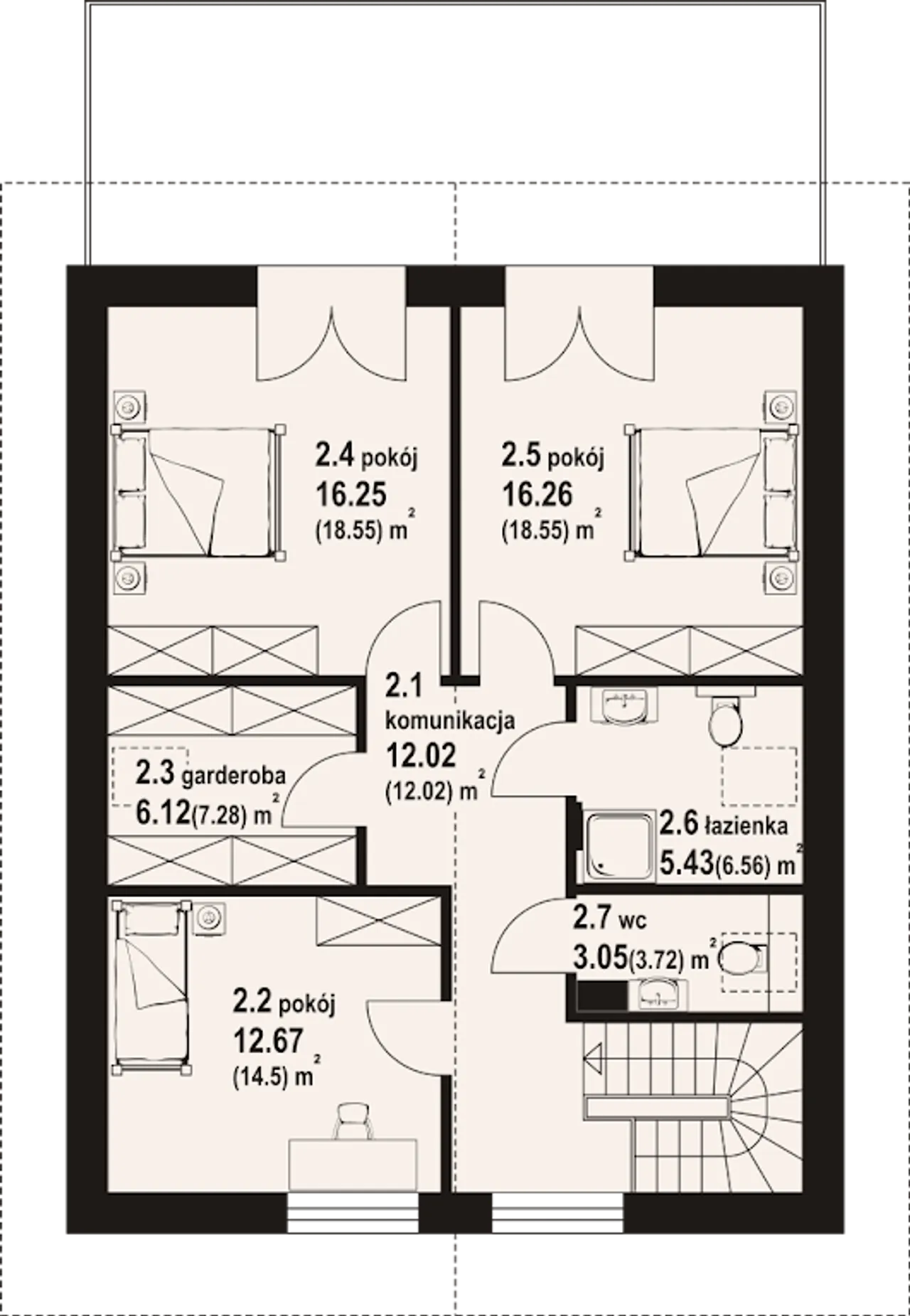 4. Pokój | 16,25 (18,55) m² |