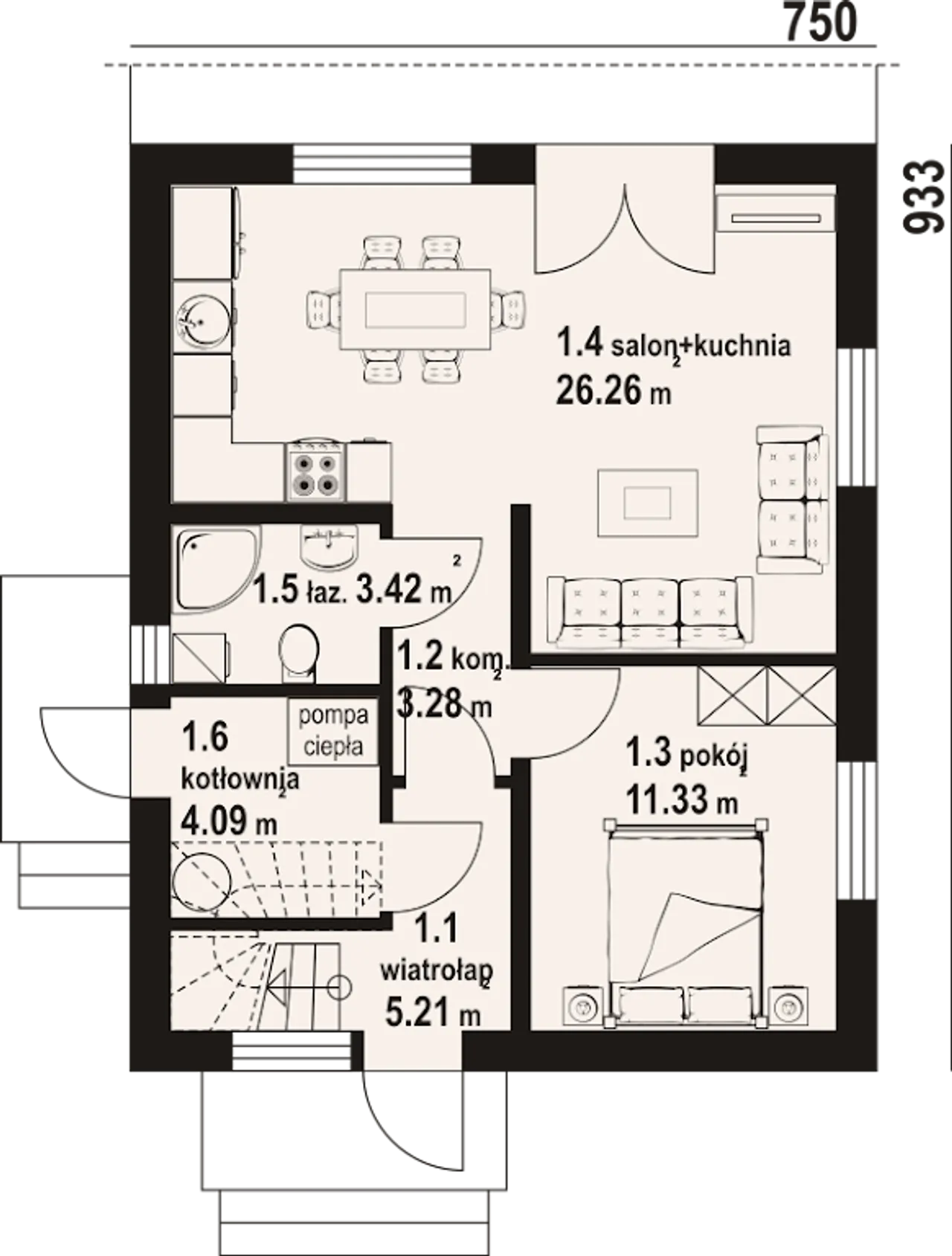 Wypełnij formularz i otrzymaj rysunki w pdf z dokładnymi wymiarami budynku i pomieszczeń (długość, szerokość, wysokość) dla projektu Grochowo bb pcr
