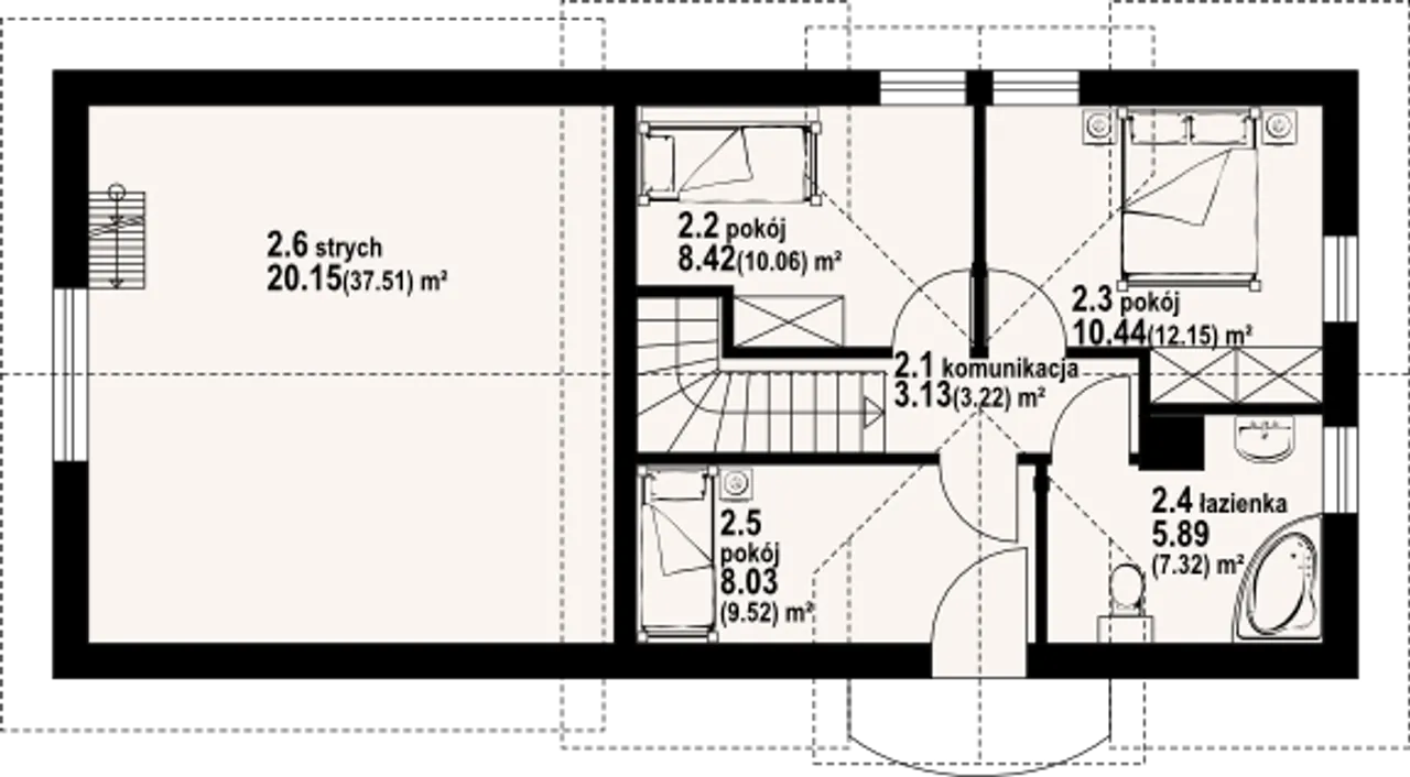 Wypełnij formularz i otrzymaj rysunki w pdf z dokładnymi wymiarami budynku i pomieszczeń (długość, szerokość, wysokość) dla projektu Gródek 55