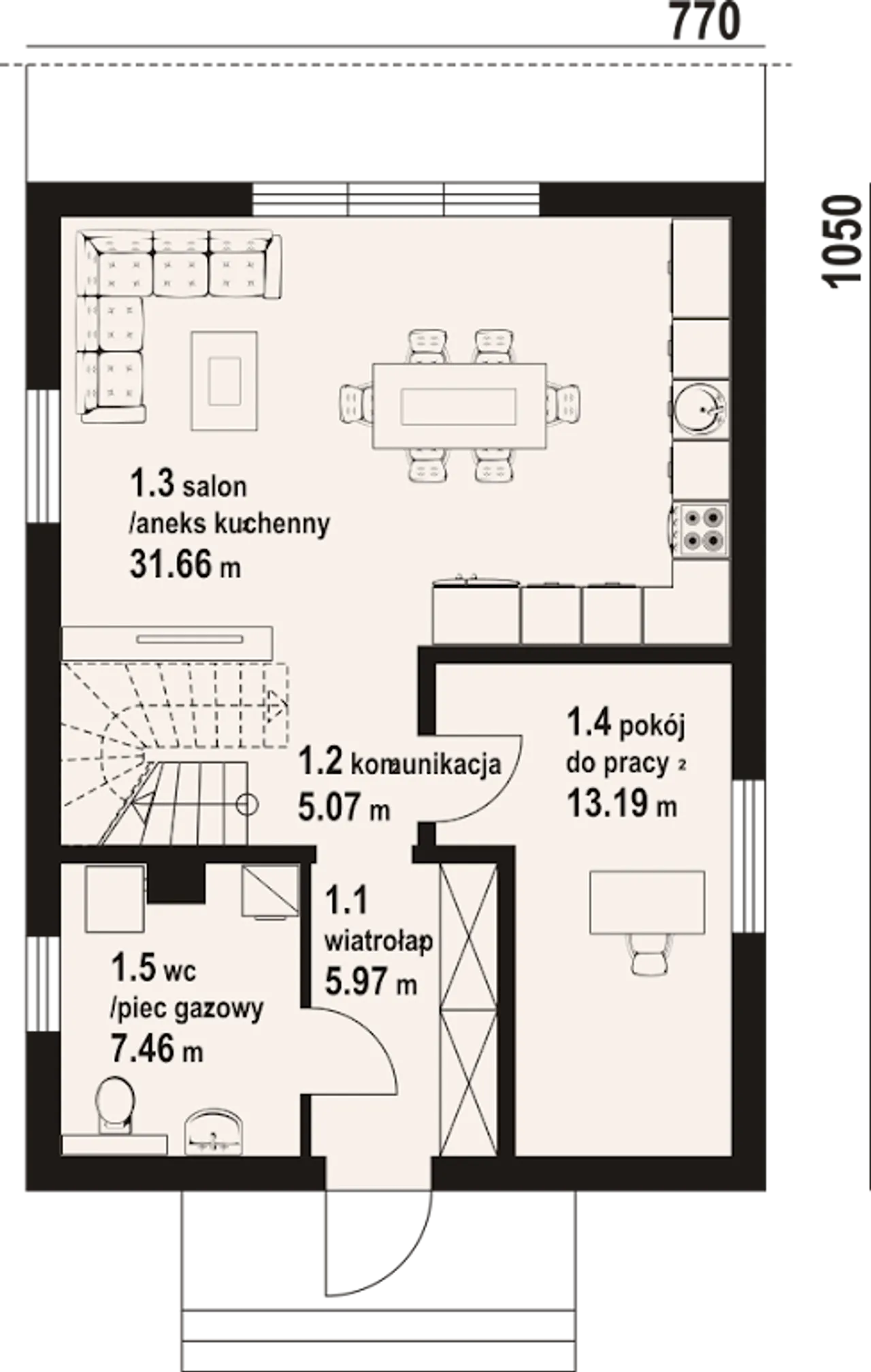 - opisu architektonicznego zawierającego m.in. opis przyjętych rozwiązań, zestawienia powierzchni (użytkowej, zabudowy, netto), kubatury oraz powierzchni poszczególnych pomieszczeń