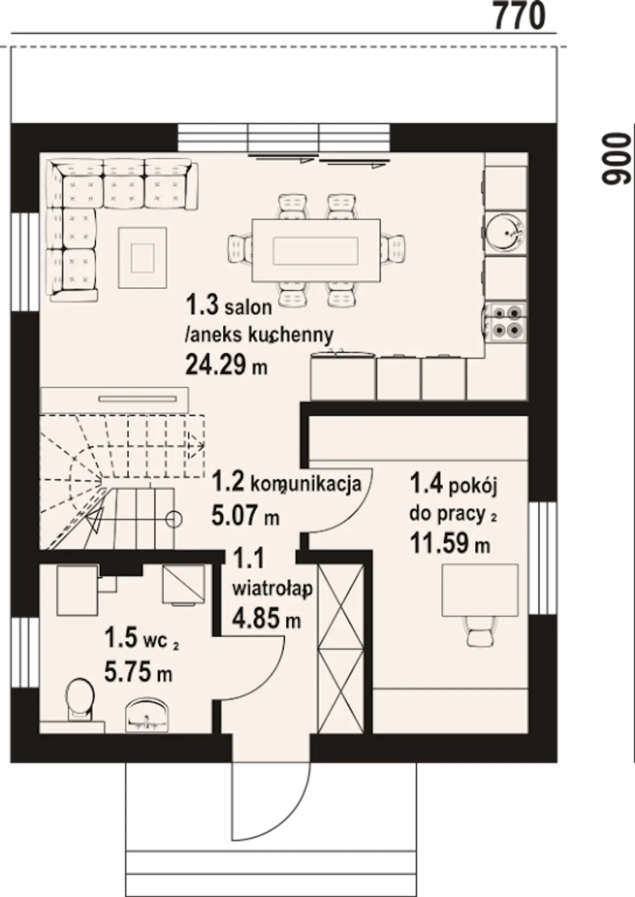 Wypełnij formularz i otrzymaj rysunki w pdf z dokładnymi wymiarami budynku i pomieszczeń (długość, szerokość, wysokość) dla projektu Grodziec aa 70 dw