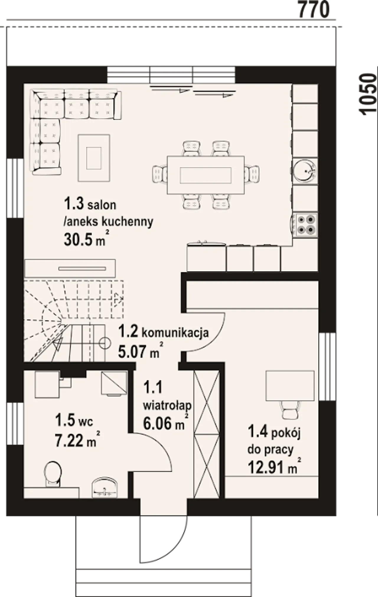 Wypełnij formularz i otrzymaj rysunki w pdf z dokładnymi wymiarami budynku i pomieszczeń (długość, szerokość, wysokość) dla projektu Grodziec aa 70 dws