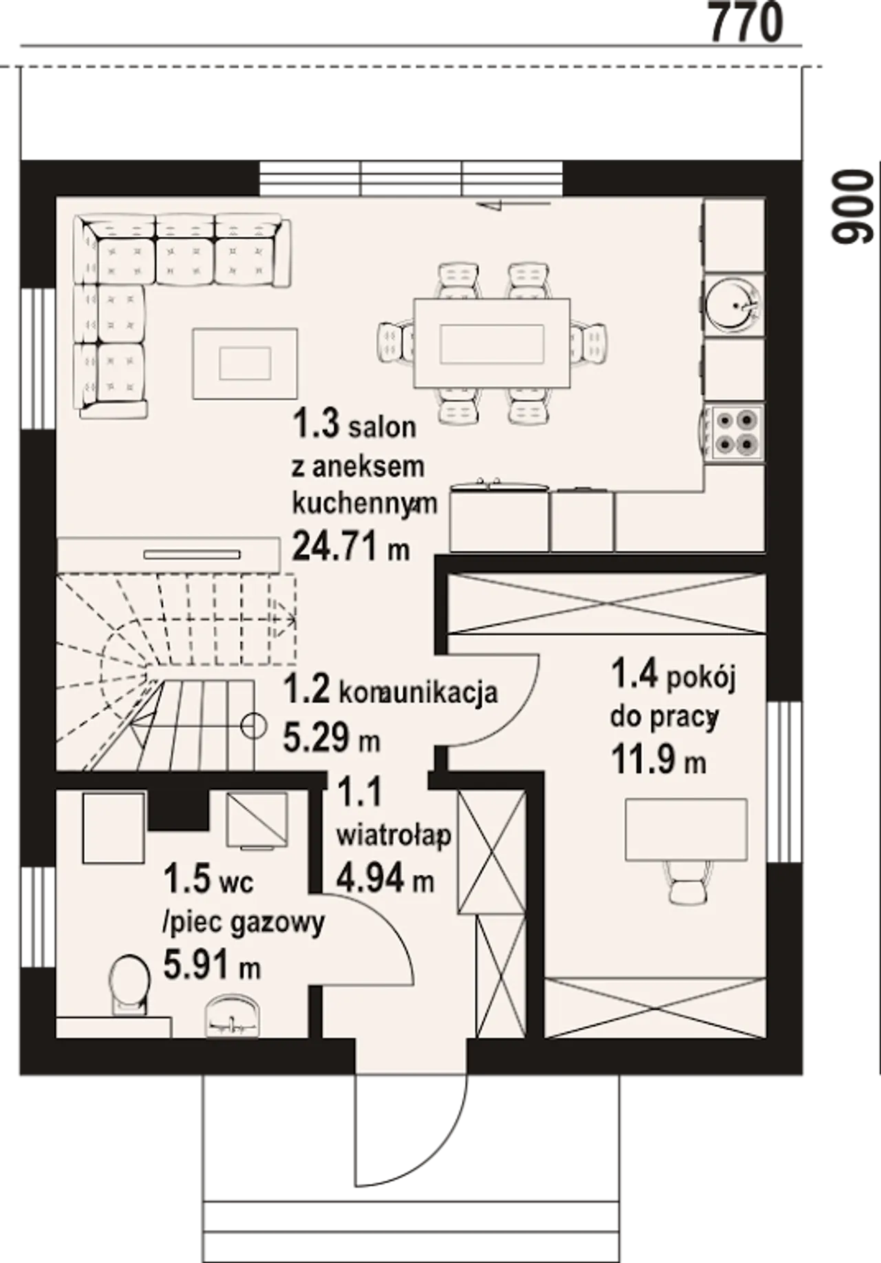 Wypełnij formularz i otrzymaj rysunki w pdf z dokładnymi wymiarami budynku i pomieszczeń (długość, szerokość, wysokość) dla projektu Grodziec bb 70 dws