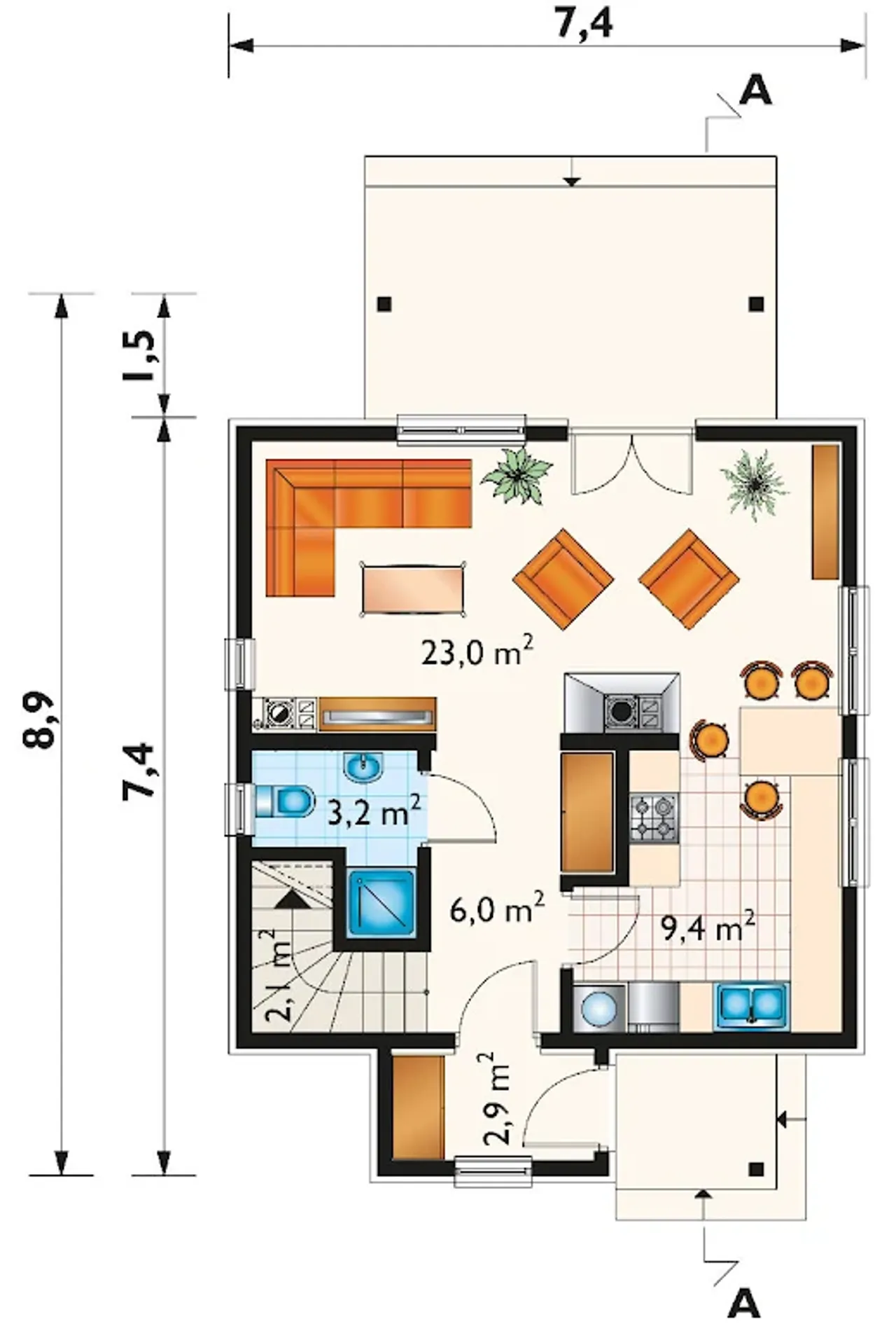 - elewacje - pokazują dokładny wygląd domu od frontu, z tyłu i z boków