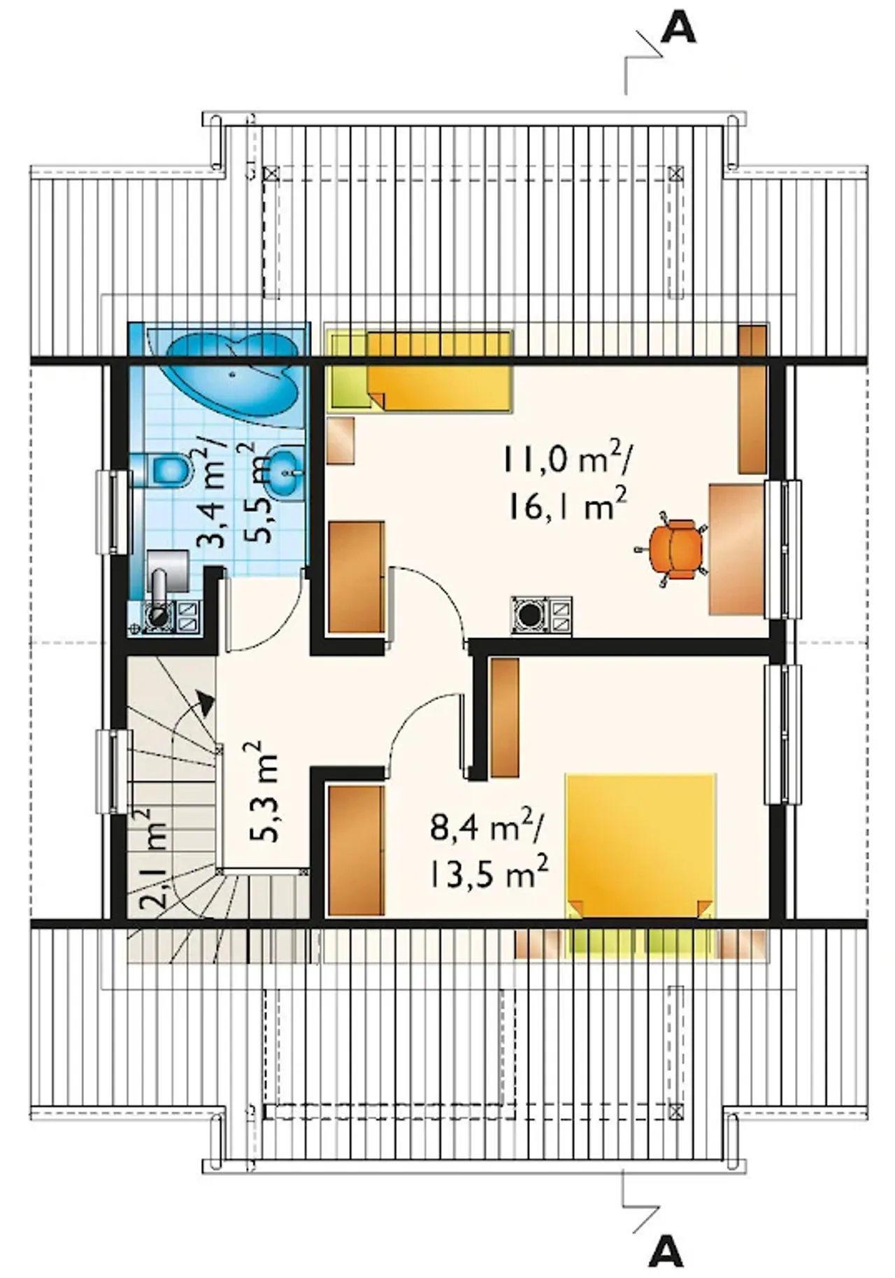 - przekroje - pokazują wszystkie elementy budynku po przecięciu go wzdłuż lub w poprzek od dachu do fundamentów tj. warstwy podłogi, stropów i dachu