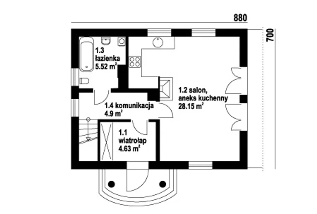 Wypełnij formularz i otrzymaj rysunki w pdf z dokładnymi wymiarami budynku i pomieszczeń (długość, szerokość, wysokość) dla projektu Grybów mały