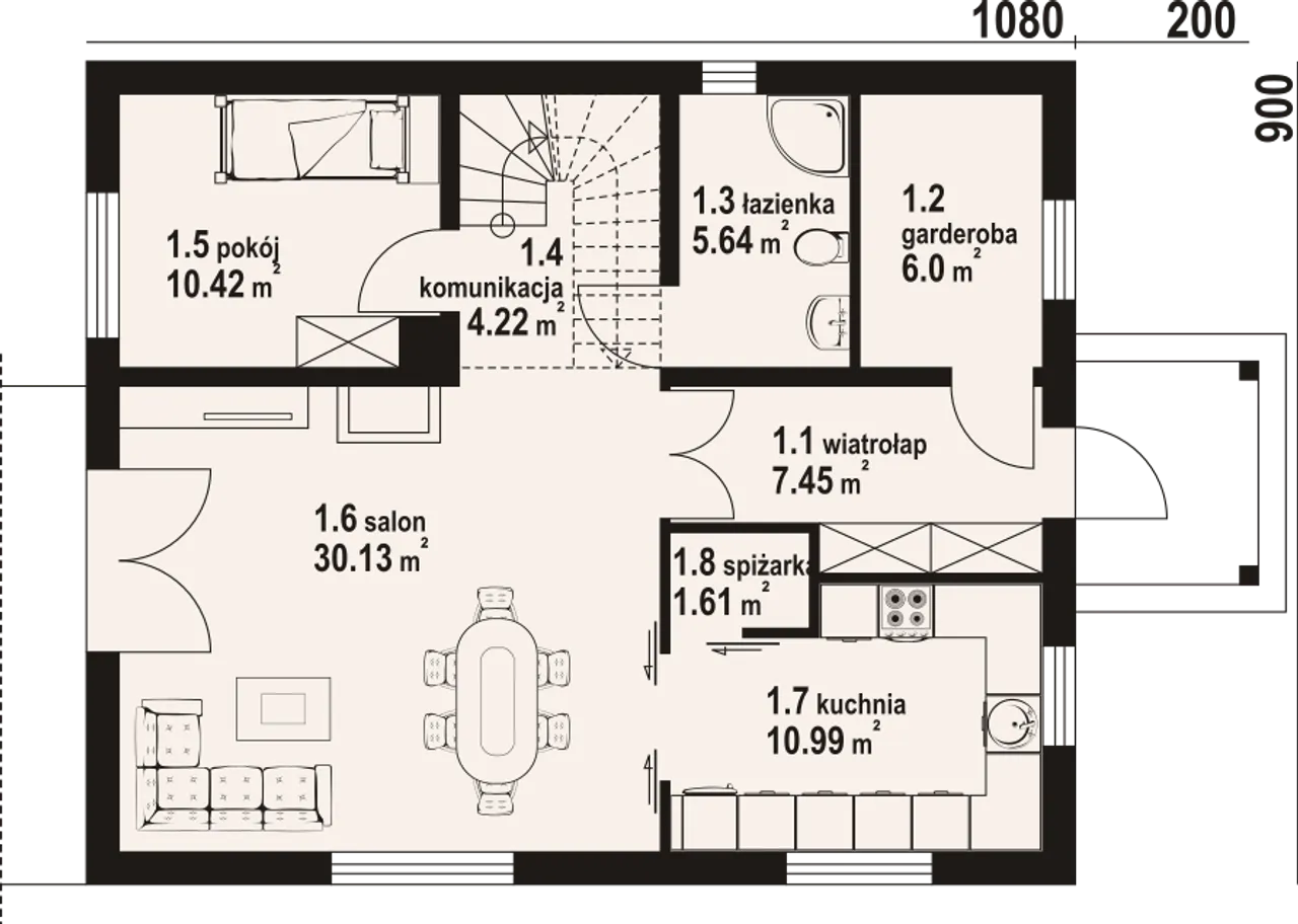 Wypełnij formularz i otrzymaj rysunki w pdf z dokładnymi wymiarami budynku i pomieszczeń (długość, szerokość, wysokość) dla projektu Gryfice 33 dws