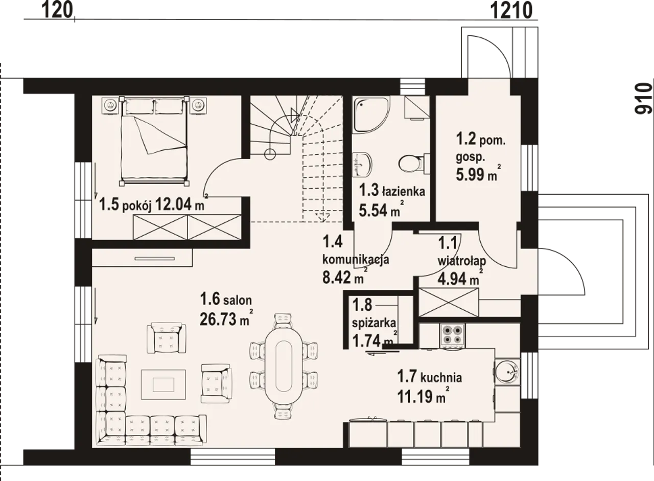 - opisu architektonicznego zawierającego m.in. opis przyjętych rozwiązań, zestawienia powierzchni (użytkowej, zabudowy, netto), kubatury oraz powierzchni poszczególnych pomieszczeń