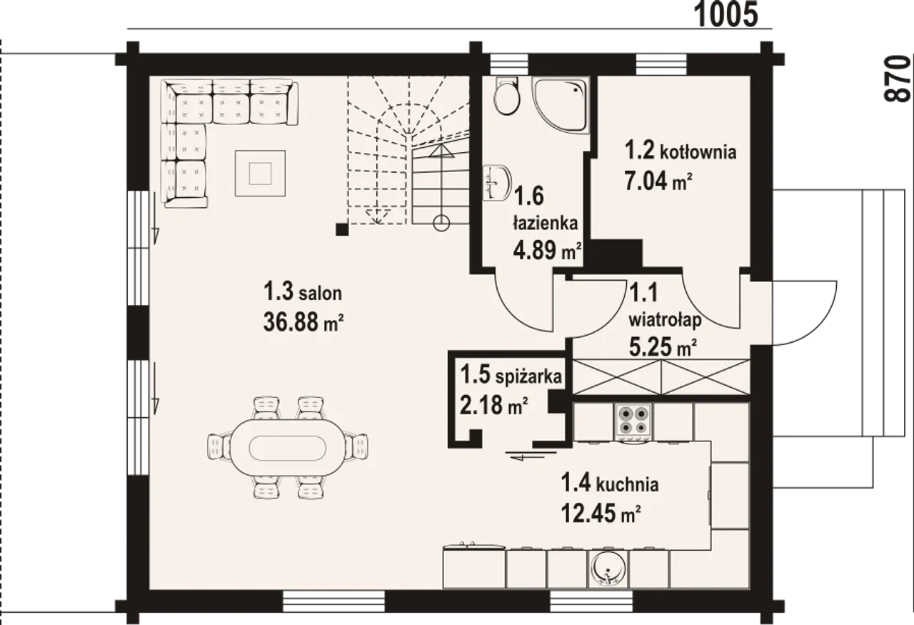 - opisu architektonicznego zawierającego m.in. opis przyjętych rozwiązań, zestawienia powierzchni (użytkowej, zabudowy, netto), kubatury oraz powierzchni poszczególnych pomieszczeń