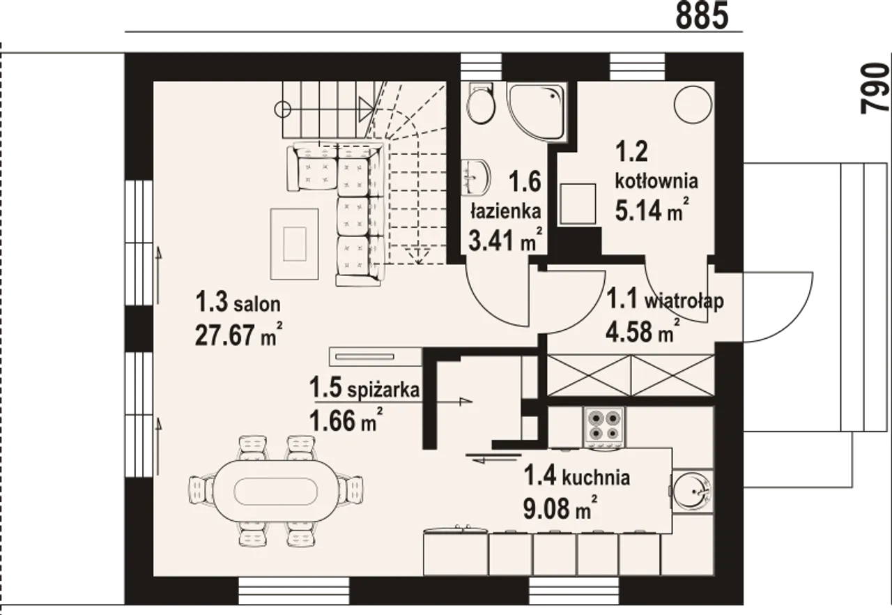 Wypełnij formularz i otrzymaj rysunki w pdf z dokładnymi wymiarami budynku i pomieszczeń (długość, szerokość, wysokość) dla projektu Gryfice bb 70