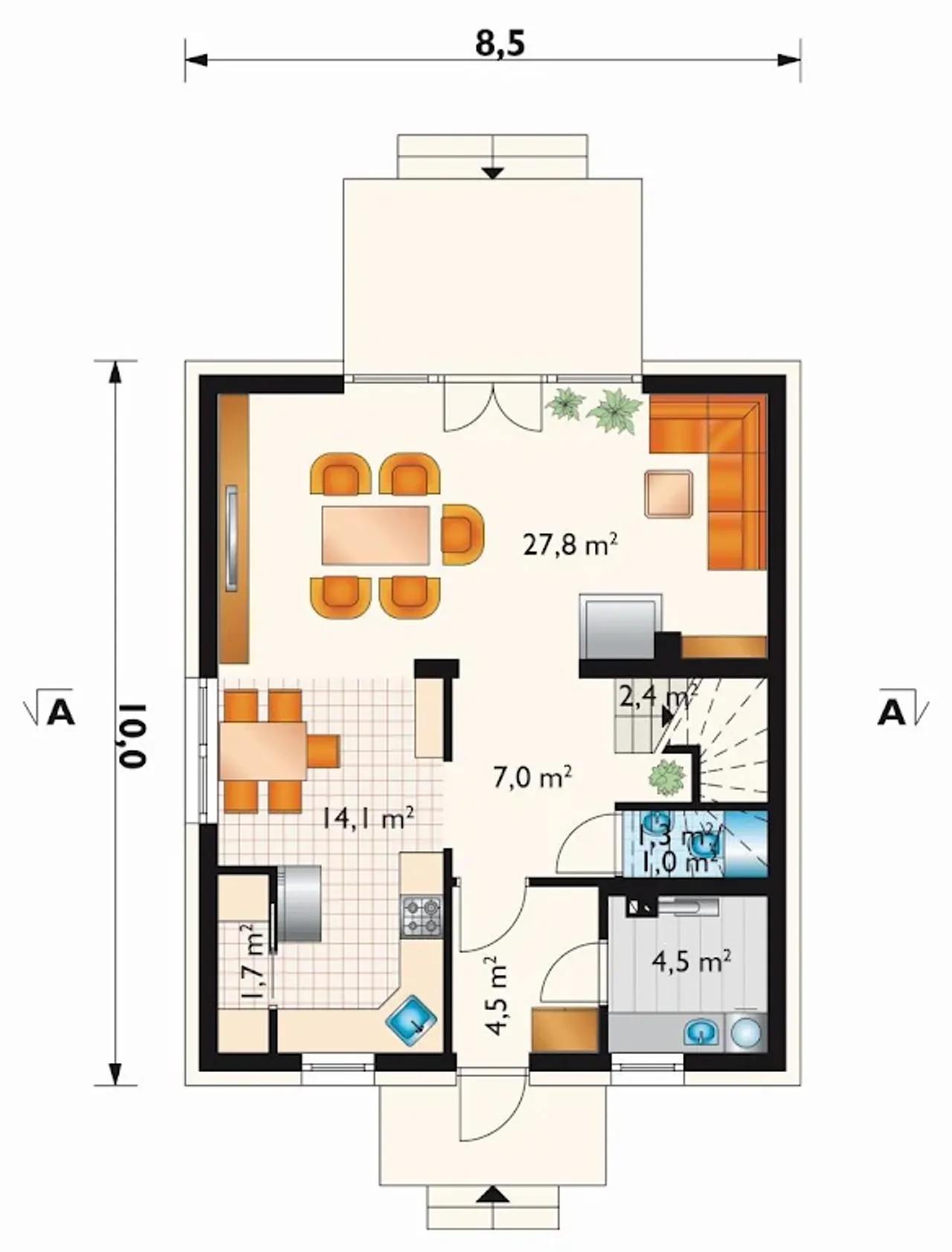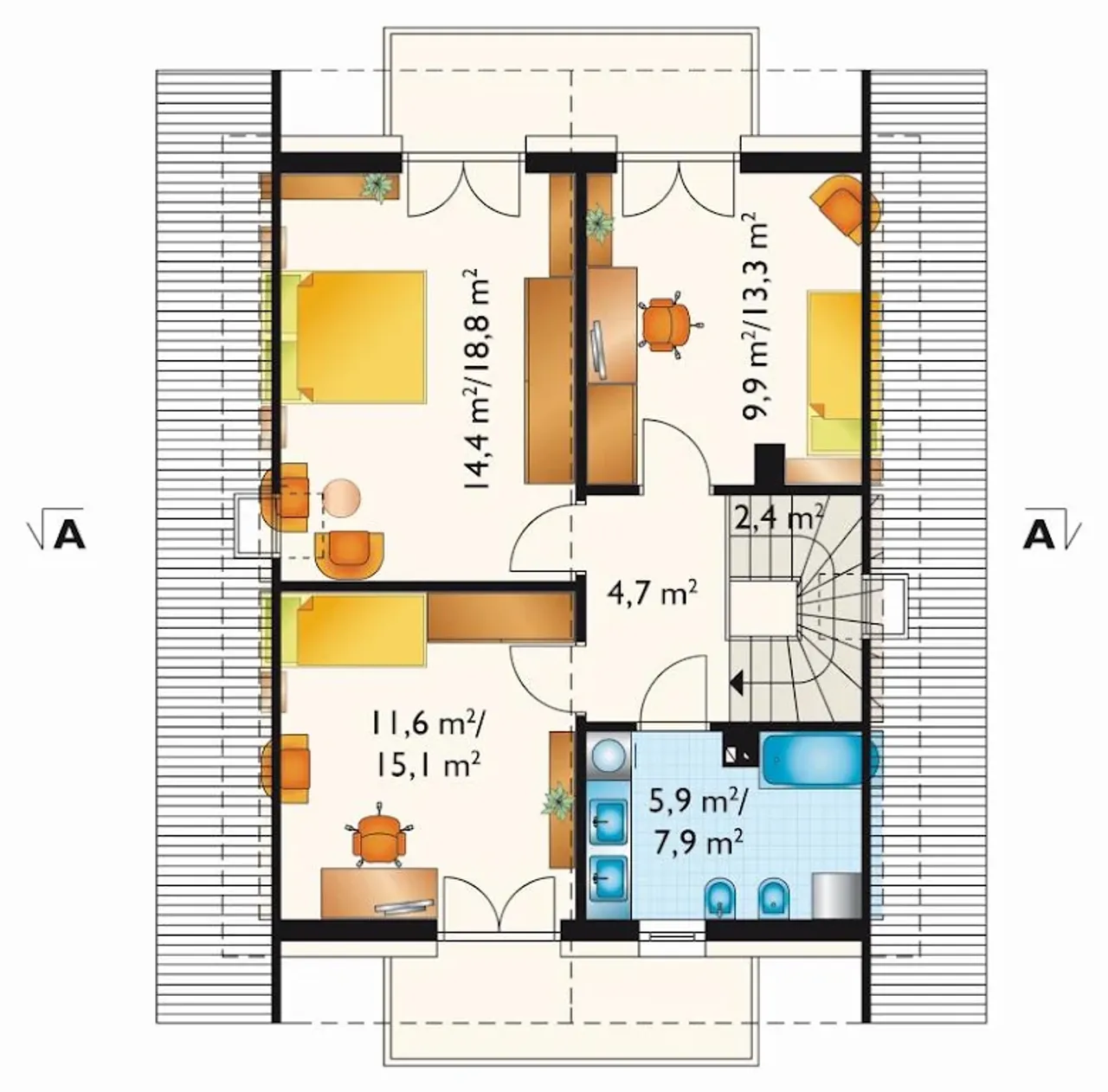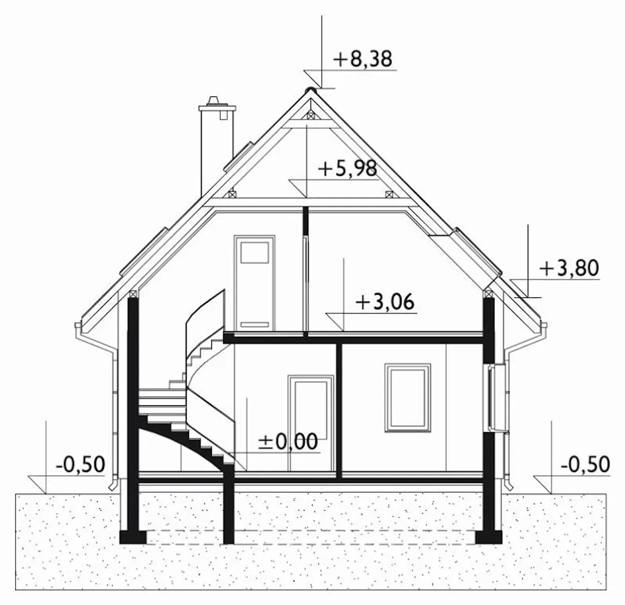 - elewacje - pokazują dokładny wygląd domu od frontu, z tyłu i z boków