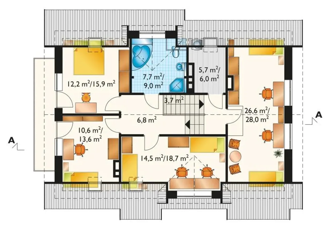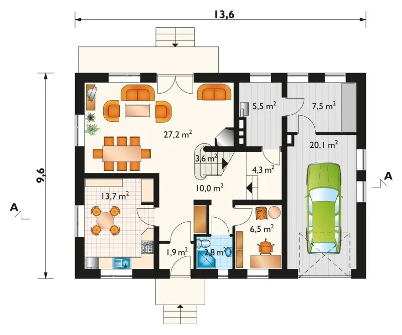 - elewacje - pokazują dokładny wygląd domu od frontu, z tyłu i z boków