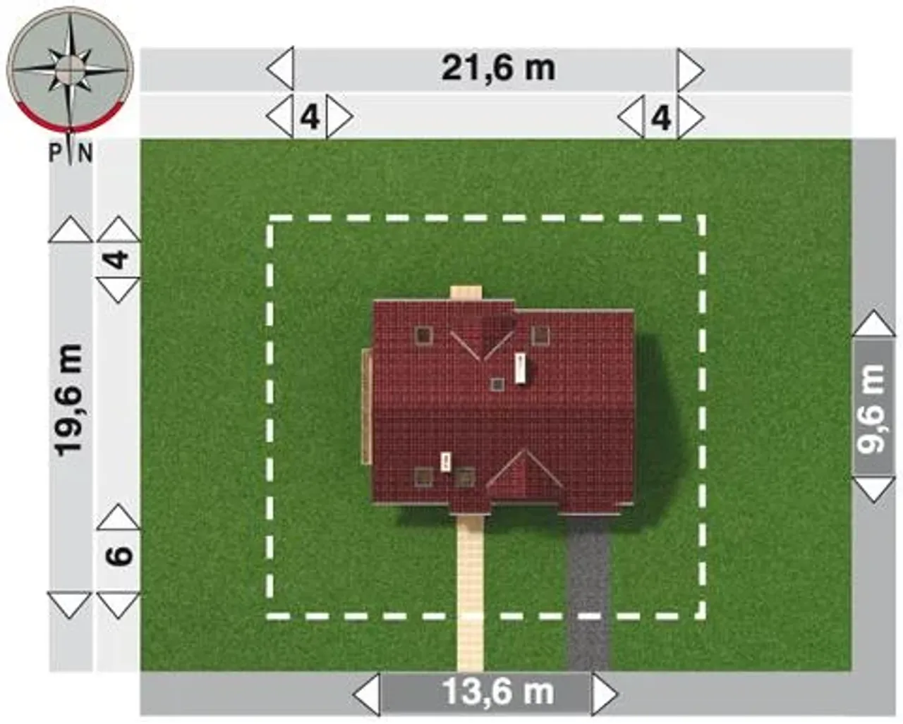 - rzut dachu - ukazuje jego kształt, wymiary, kąt nachylenia połaci, rozmieszczenie okien połaciowych, lukarn, świetlików i rur spustowych, pokazuje rozmieszczenie kominów i informuje o sposobie odwodnienia: rozmieszczeniu i rozmiarach rynien