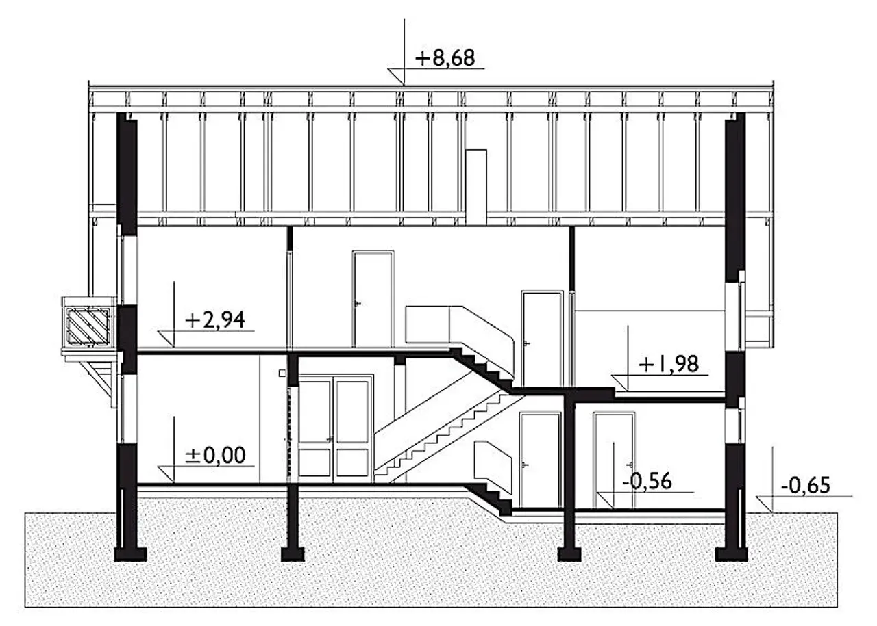 - przekroje - pokazują wszystkie elementy budynku po przecięciu go wzdłuż lub w poprzek od dachu do fundamentów tj. warstwy podłogi, stropów i dachu
