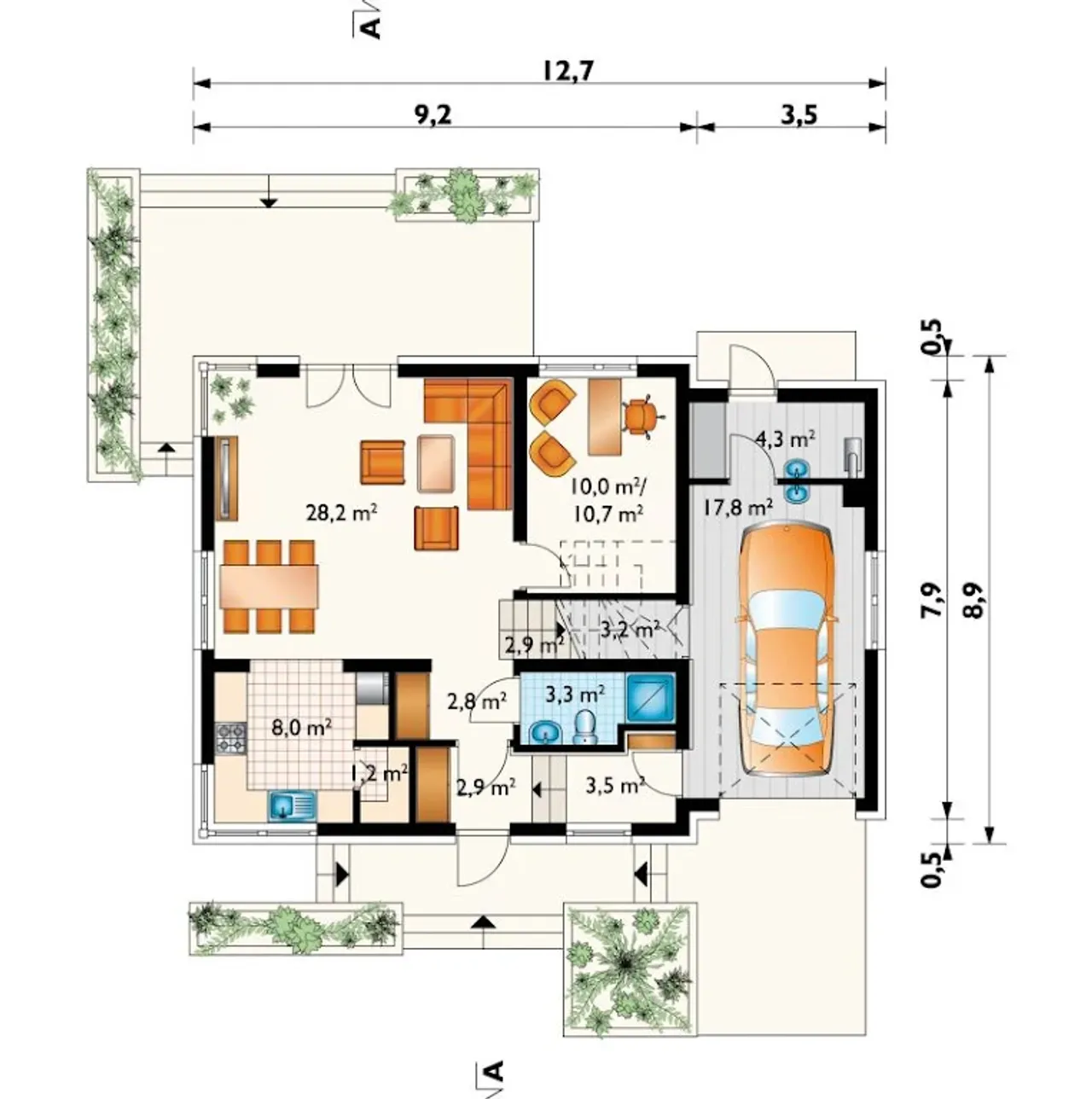 9. Pokój dzienny + jadalnia | 28,20 m² |