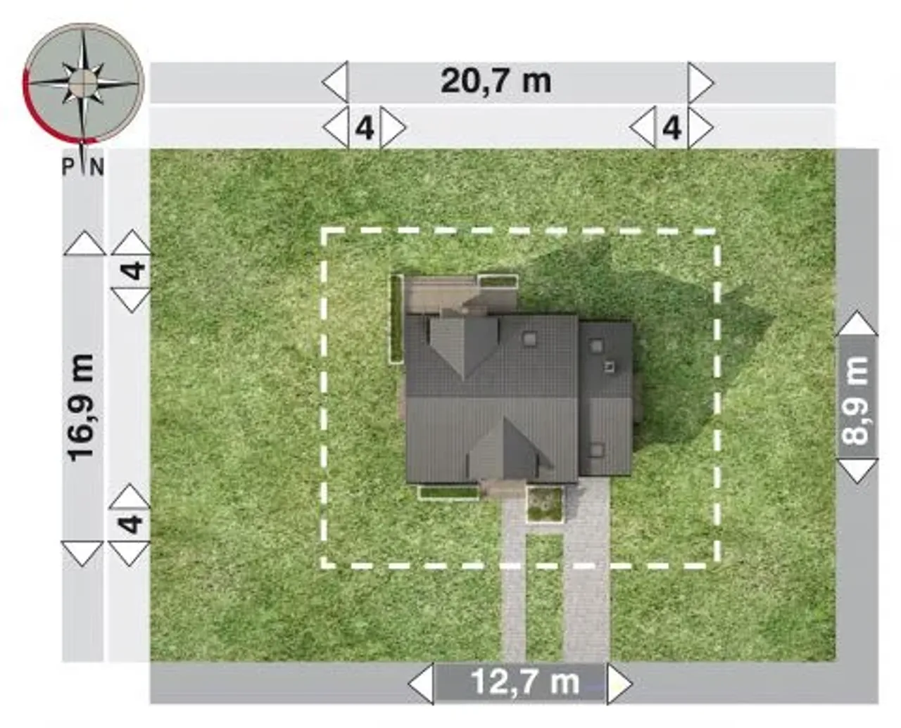 Wypełnij formularz i otrzymaj rysunki w pdf z dokładnymi wymiarami budynku i pomieszczeń (długość, szerokość, wysokość) dla projektu Halina