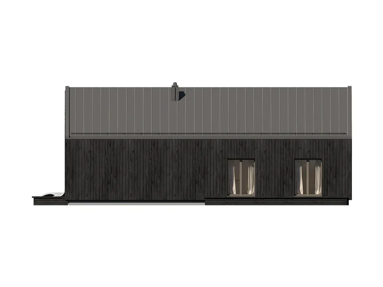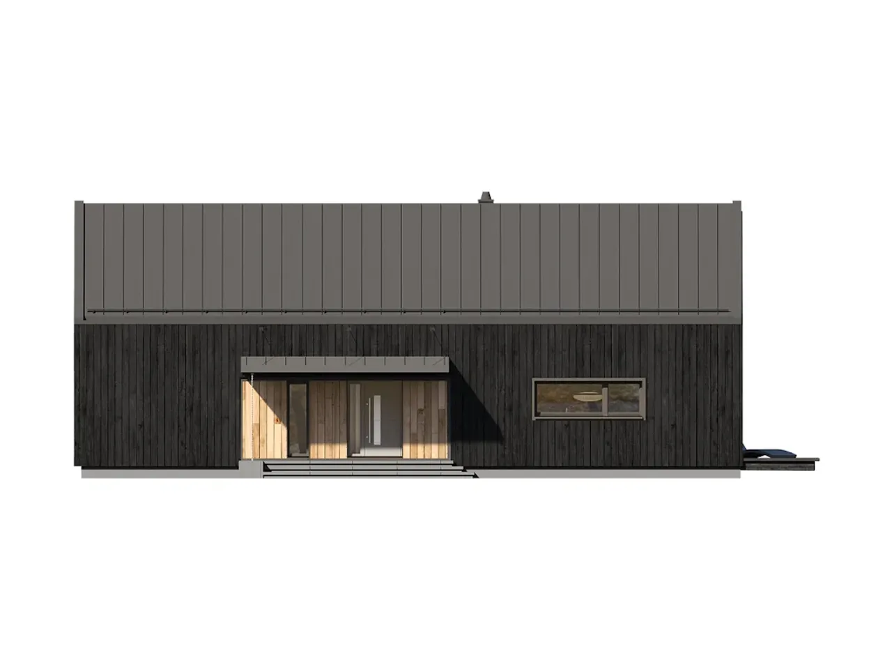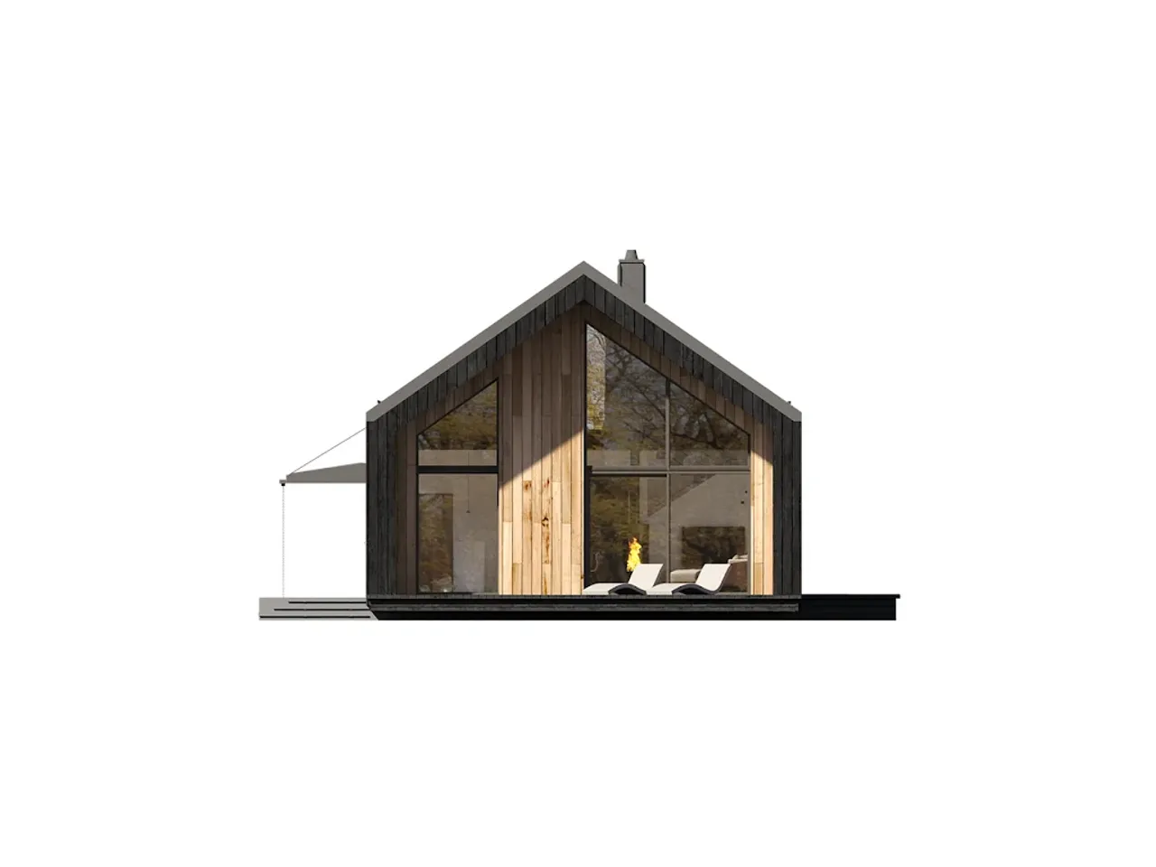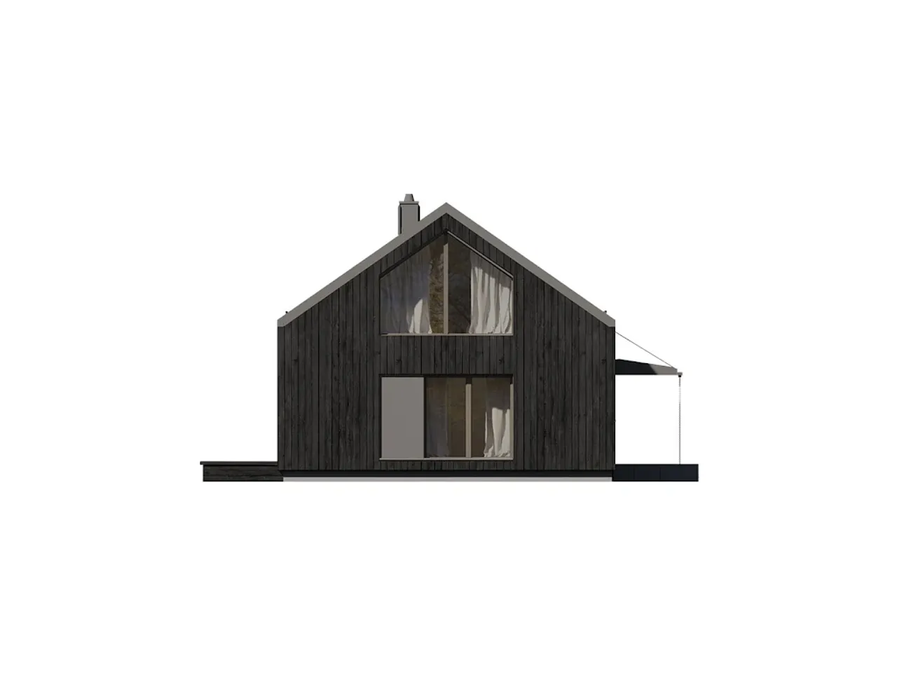 Minimalistyczna bryła, dwuspadowy dach i inteligentne strefowanie wnętrza gwarantują uniwersalność oraz łatwą adaptację do potrzeb rodziny. Kominek w salonie podkreśla przytulny klimat, a technologia murowana i docieplenie wełną mineralną dbają o optymalne warunki mieszkalne przez cały rok.