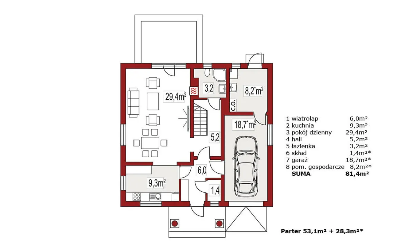 Wypełnij formularz i otrzymaj rysunki w pdf z dokładnymi wymiarami budynku i pomieszczeń (długość, szerokość, wysokość) dla projektu Harmonia Dworek A 100 MDM