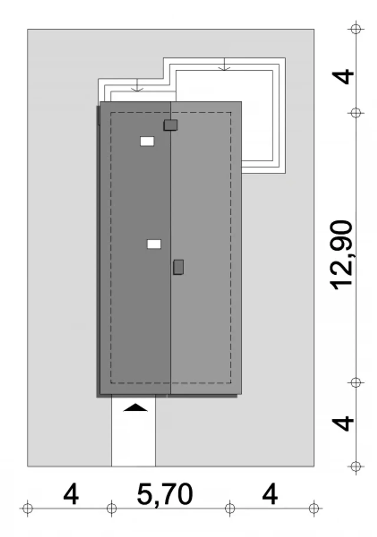 | Szerokość budynku 5.7 m |