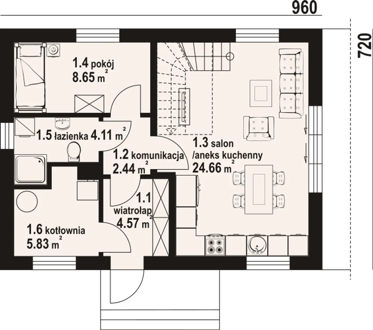 - opisu architektonicznego zawierającego m.in. opis przyjętych rozwiązań, zestawienia powierzchni (użytkowej, zabudowy, netto), kubatury oraz powierzchni poszczególnych pomieszczeń