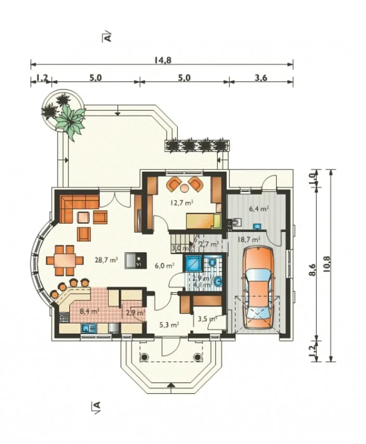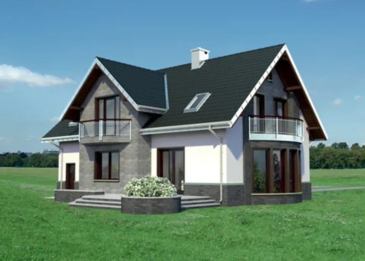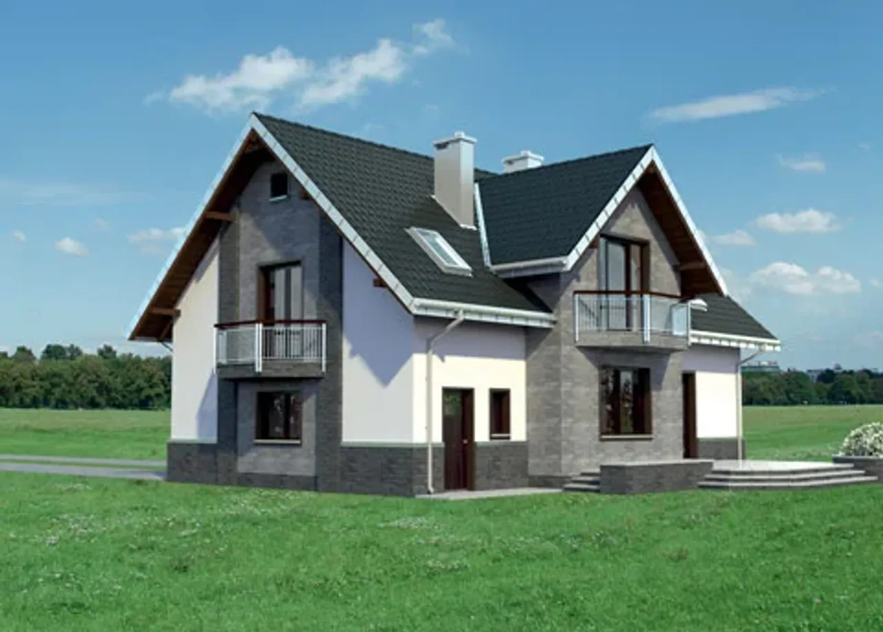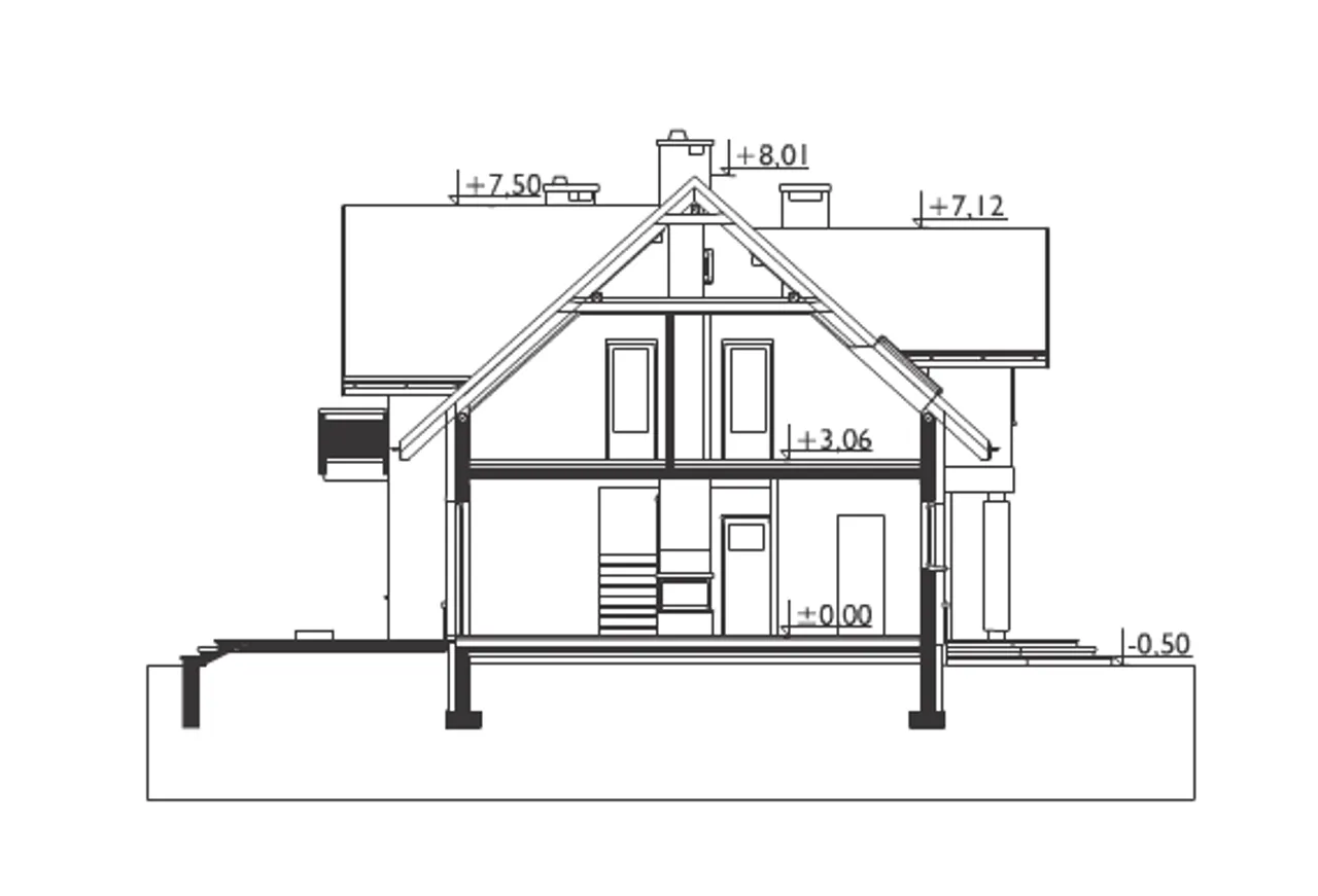 - elewacje - pokazują dokładny wygląd domu od frontu, z tyłu i z boków