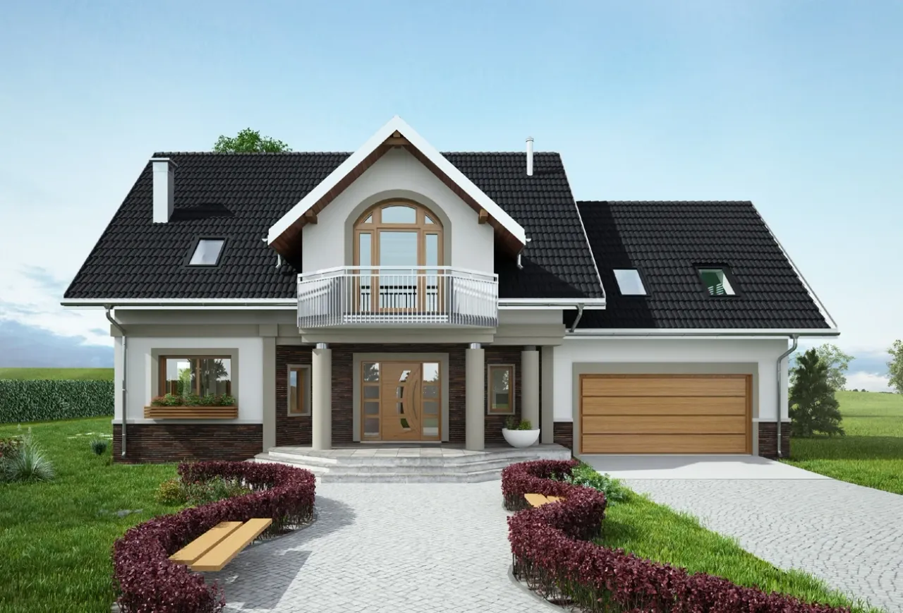 - elewacje - pokazują dokładny wygląd domu od frontu, z tyłu i z boków