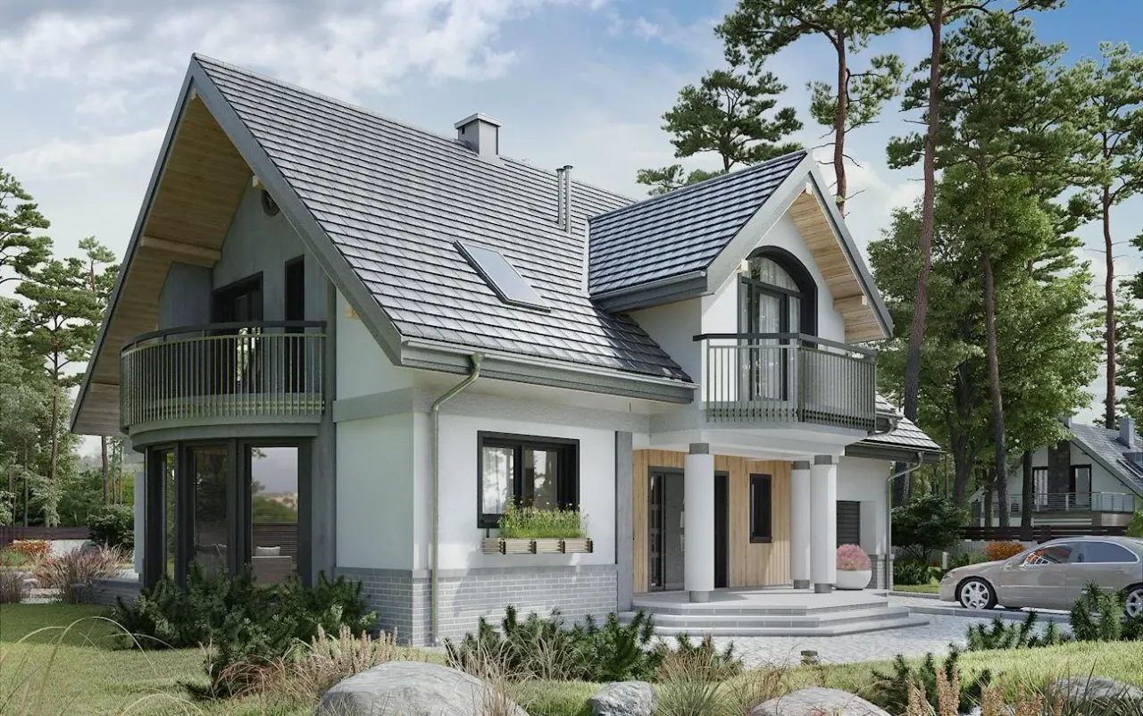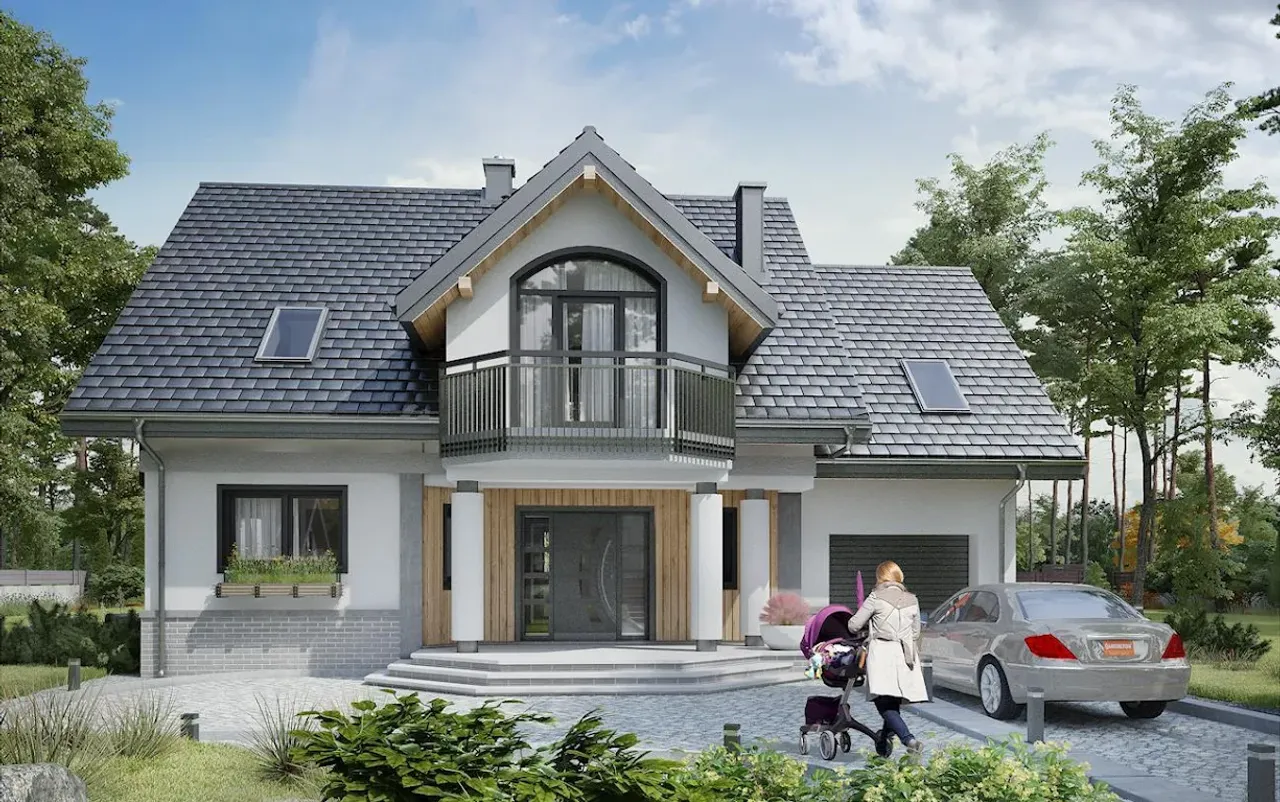 - elewacje - pokazują dokładny wygląd domu od frontu, z tyłu i z boków