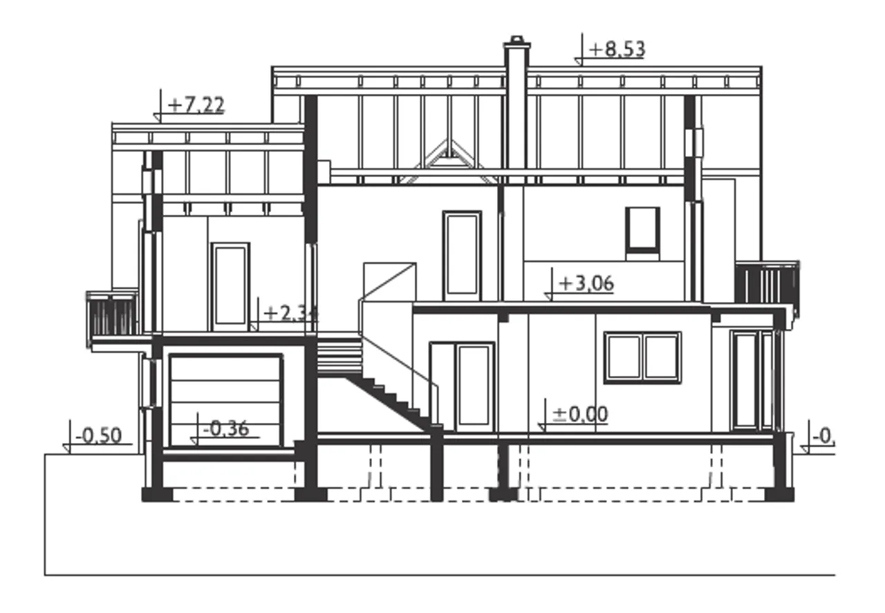 - przekroje - pokazują wszystkie elementy budynku po przecięciu go wzdłuż lub w poprzek od dachu do fundamentów tj. warstwy podłogi, stropów i dachu