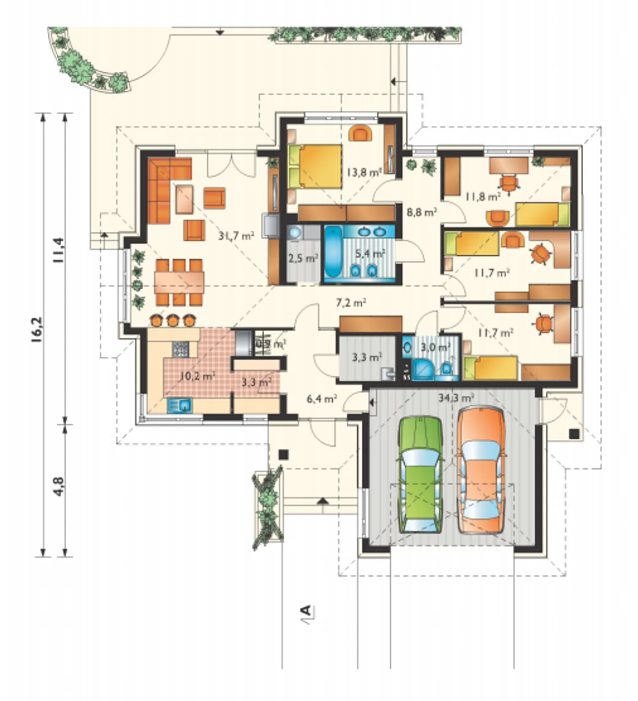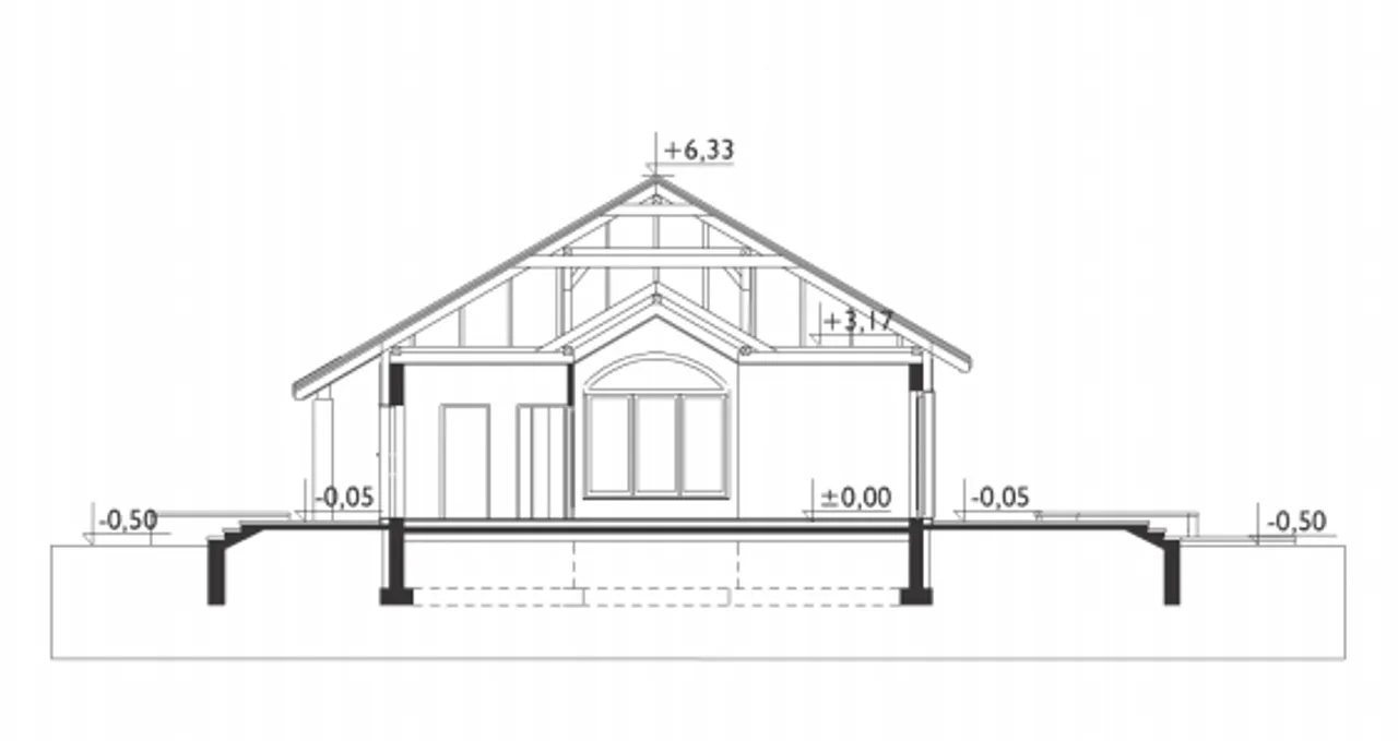 - elewacje - pokazują dokładny wygląd domu od frontu, z tyłu i z boków