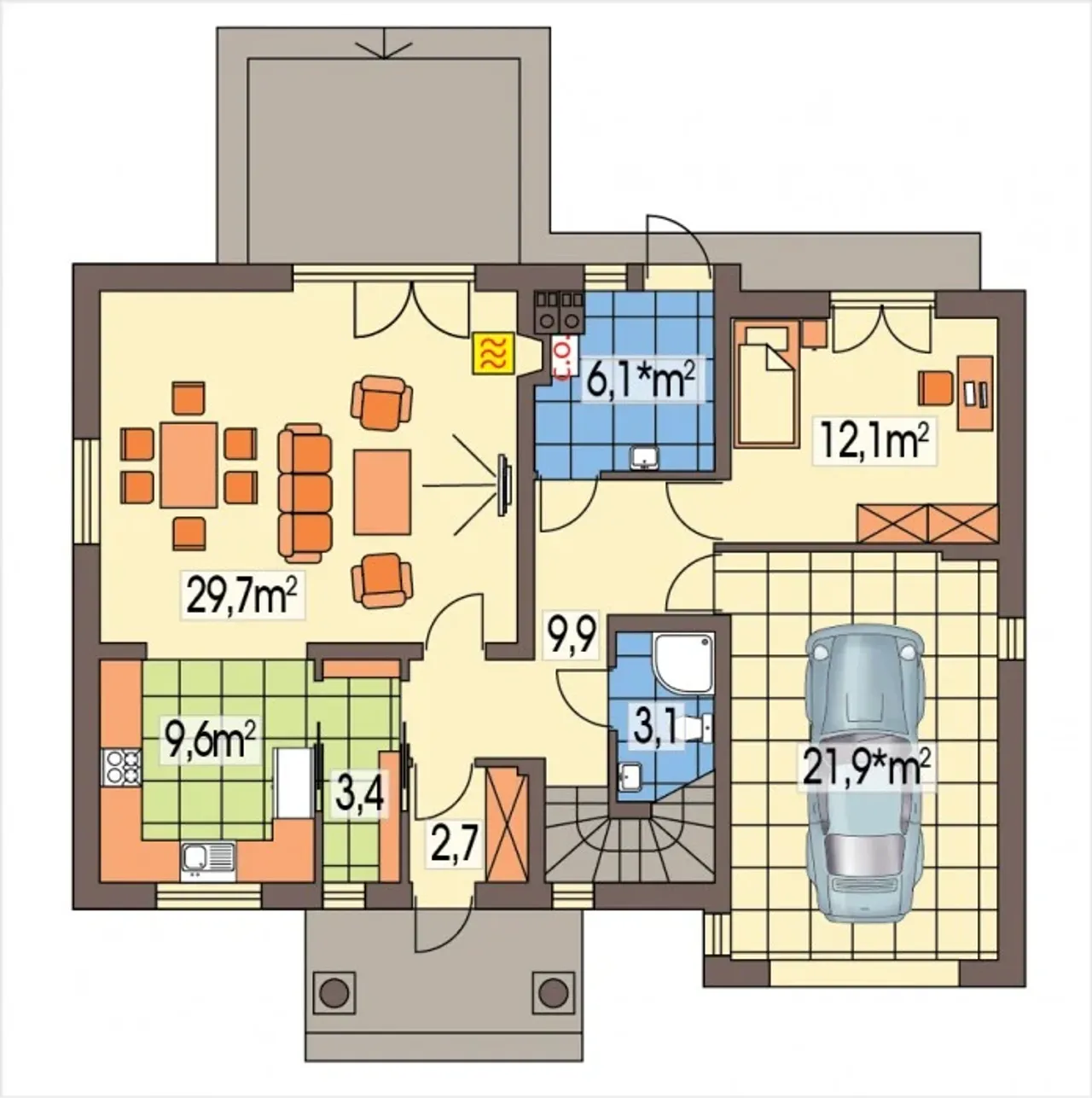 Wypełnij formularz i otrzymaj rysunki w pdf z dokładnymi wymiarami budynku i pomieszczeń (długość, szerokość, wysokość) dla projektu Hiacynt wersja C z pojedynczym garażem
