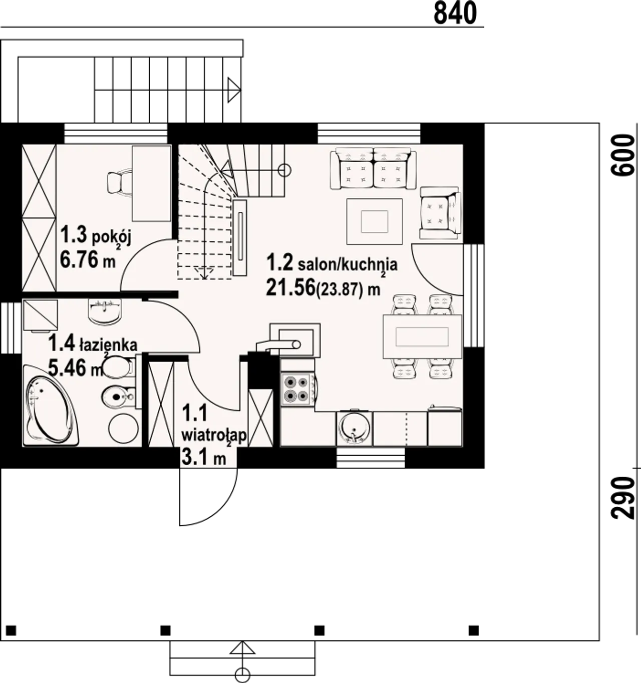 - opisu architektonicznego zawierającego m.in. opis przyjętych rozwiązań, zestawienia powierzchni (użytkowej, zabudowy, netto), kubatury oraz powierzchni poszczególnych pomieszczeń