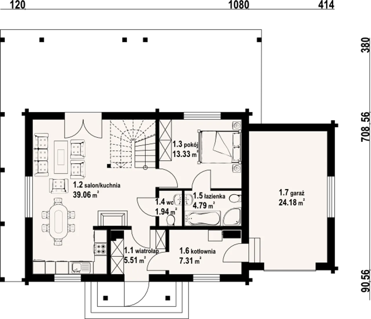 Wypełnij formularz i otrzymaj rysunki w pdf z dokładnymi wymiarami budynku i pomieszczeń (długość, szerokość, wysokość) dla projektu Hoczew 17 dw