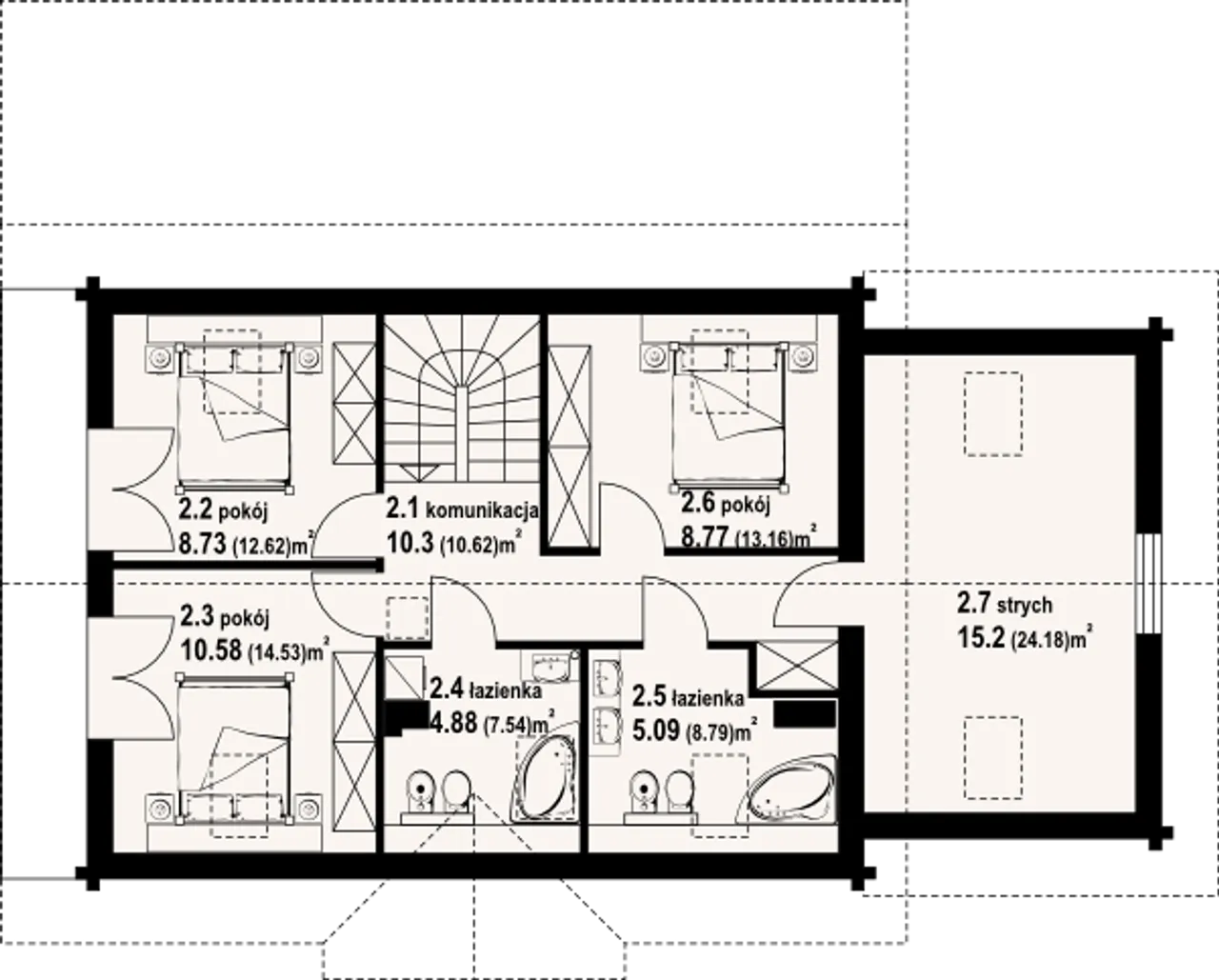 - rzutów kondygnacji użytkowych (parteru i jeśli występują: poddasza, piętra, piwnic)