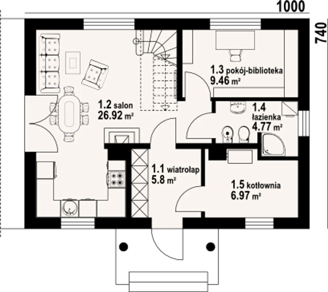 - opisu architektonicznego zawierającego m.in. opis przyjętych rozwiązań, zestawienia powierzchni (użytkowej, zabudowy, netto), kubatury oraz powierzchni poszczególnych pomieszczeń