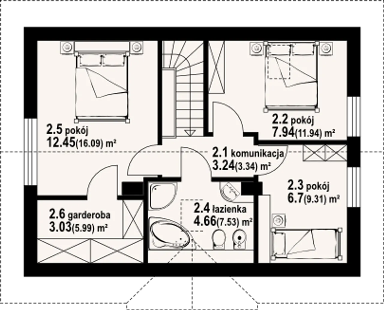 Wypełnij formularz i otrzymaj rysunki w pdf z dokładnymi wymiarami budynku i pomieszczeń (długość, szerokość, wysokość) dla projektu Hoczew bk 11