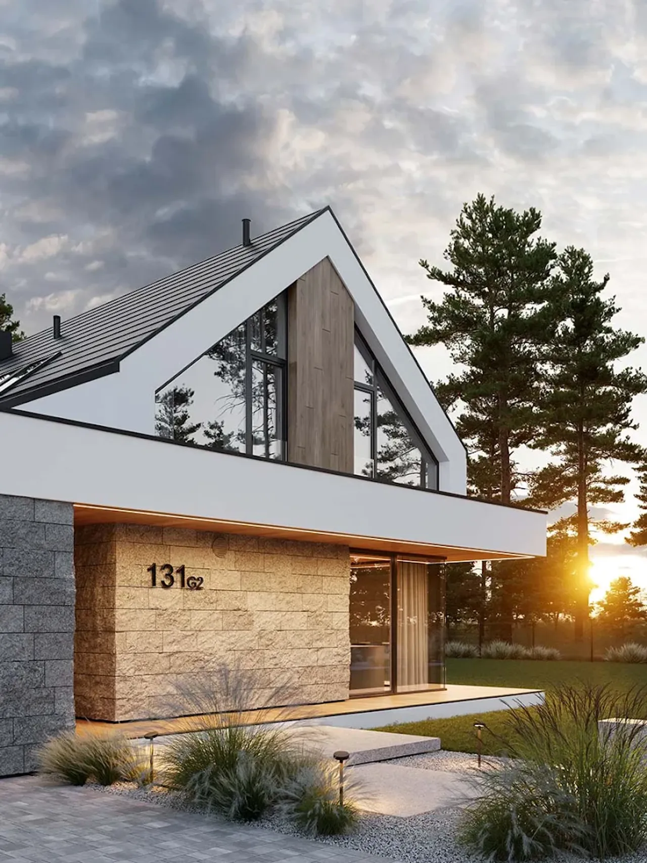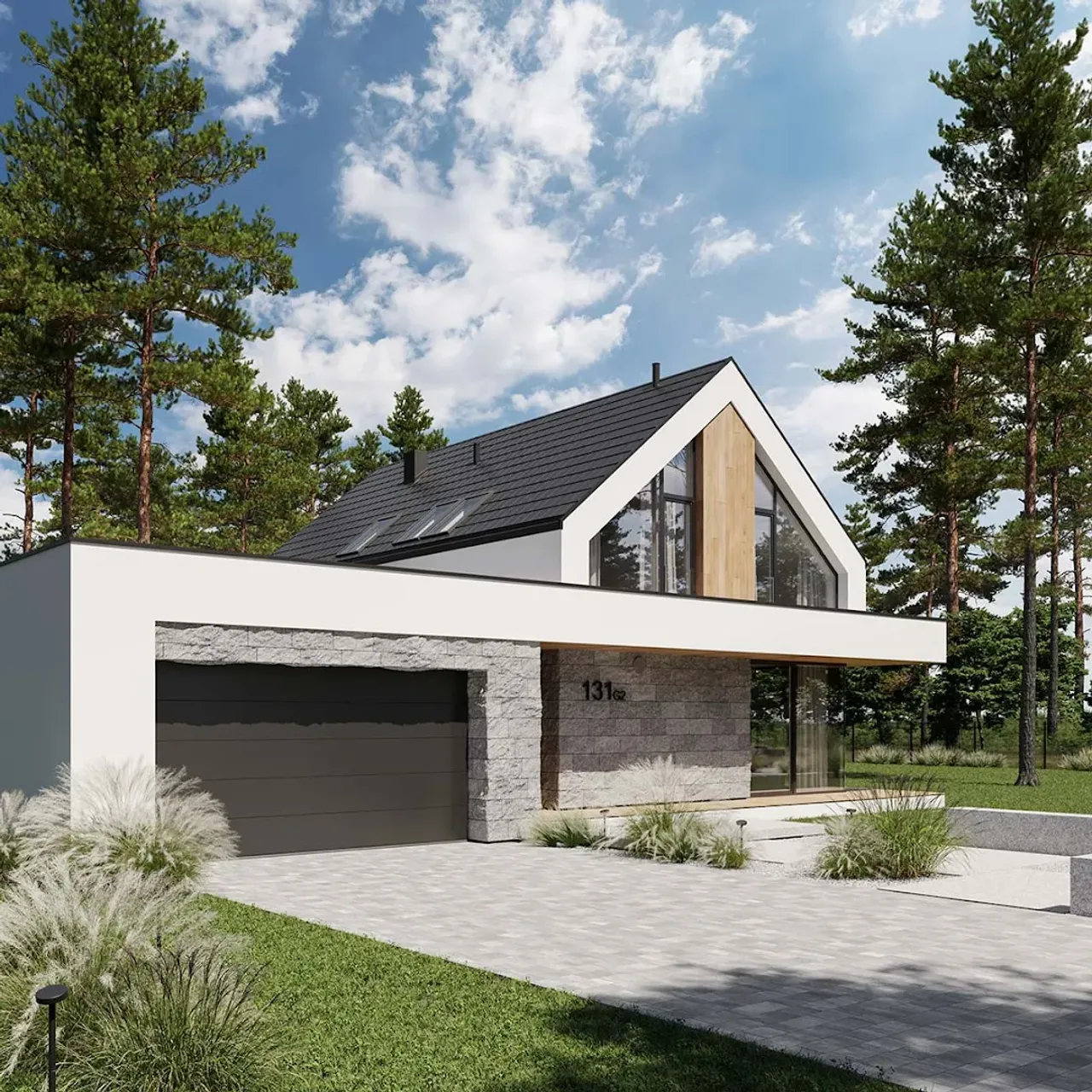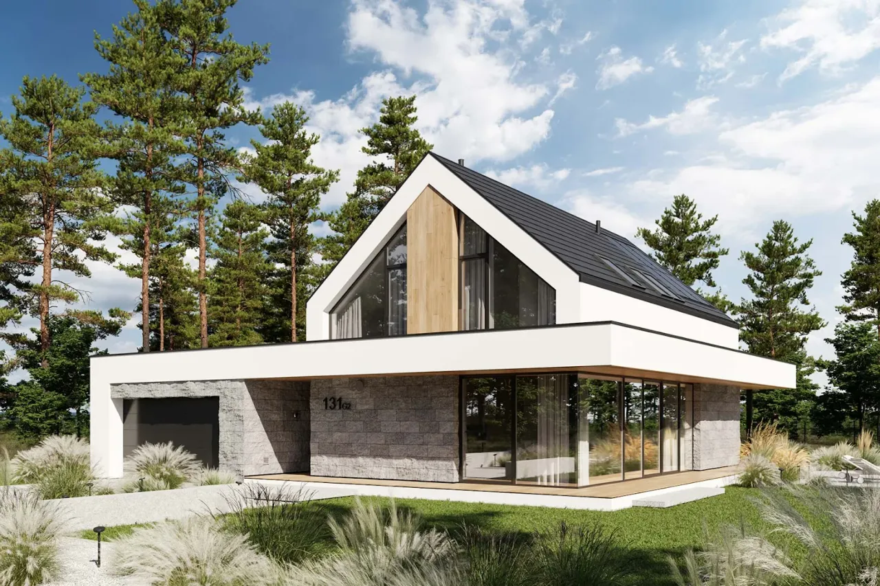 Projekt domu HomeKoncept 131 G2 urzeka swoim nowoczesnym stylem. Elewacja przyciąga uwagę eleganckim wyglądem. Przestronne wnętrza imponują starannie zaplanowaną aranżacją. Duże okna zapewniają doskonałe doświetlenie pomieszczeń. Proporcje przestrzeni są idealnie zbalansowane. Funkcjonalność obiektu zaskakuje nowatorskimi rozwiązaniami. Przestrzeń została wykorzystana w sposób maksymalnie efektywny. Architekci zadbali o każdy szczegół. Projekt wyróżnia się spośród innych dostępnych na rynku. Estetyka budynku jest niepowtarzalna i wyjątkowa. Rozważam możliwość zakupu projektu i realizacji budowy tego domu.