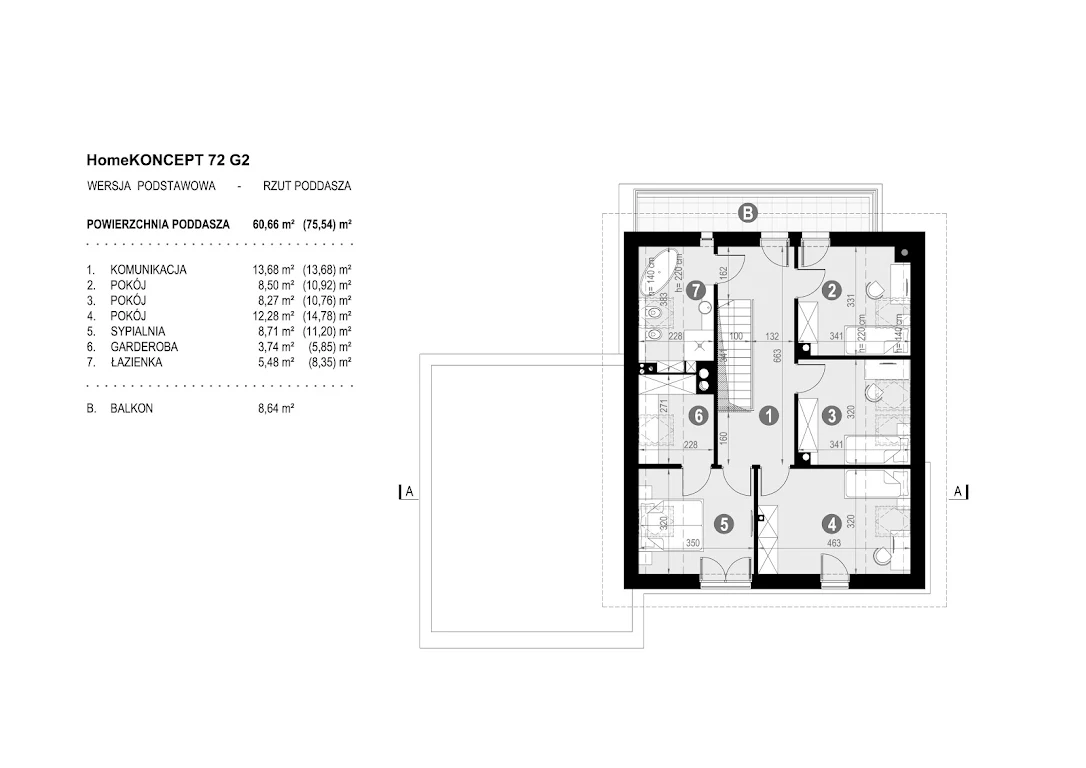 Rzuty gotowego projektu domu HomeKoncept 72 G2