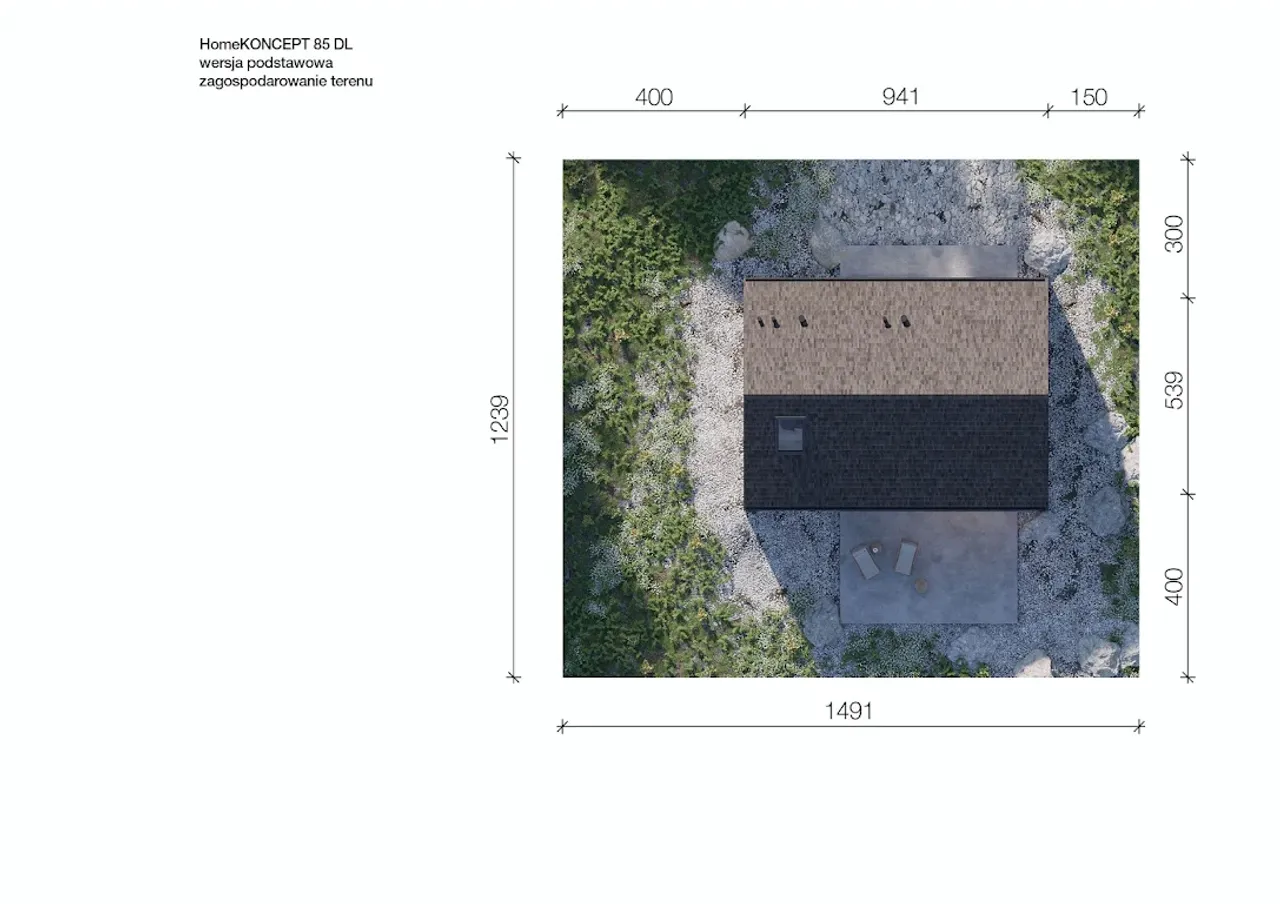 Wypełnij formularz i otrzymaj rysunki w pdf z dokładnymi wymiarami budynku i pomieszczeń (długość, szerokość, wysokość) dla projektu HomeKoncept 85 DL