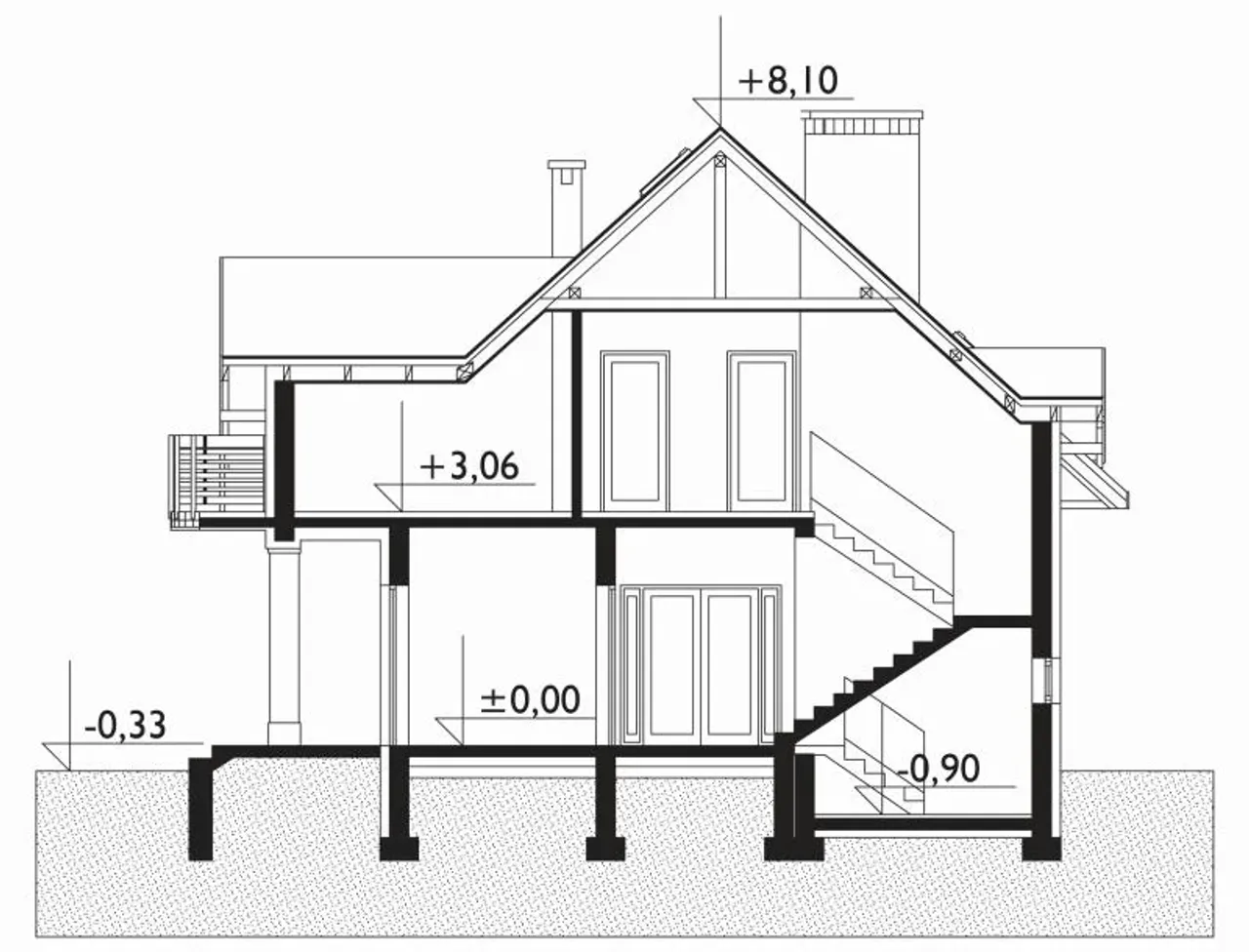 - przekroje - pokazują wszystkie elementy budynku po przecięciu go wzdłuż lub w poprzek od dachu do fundamentów tj. warstwy podłogi, stropów i dachu