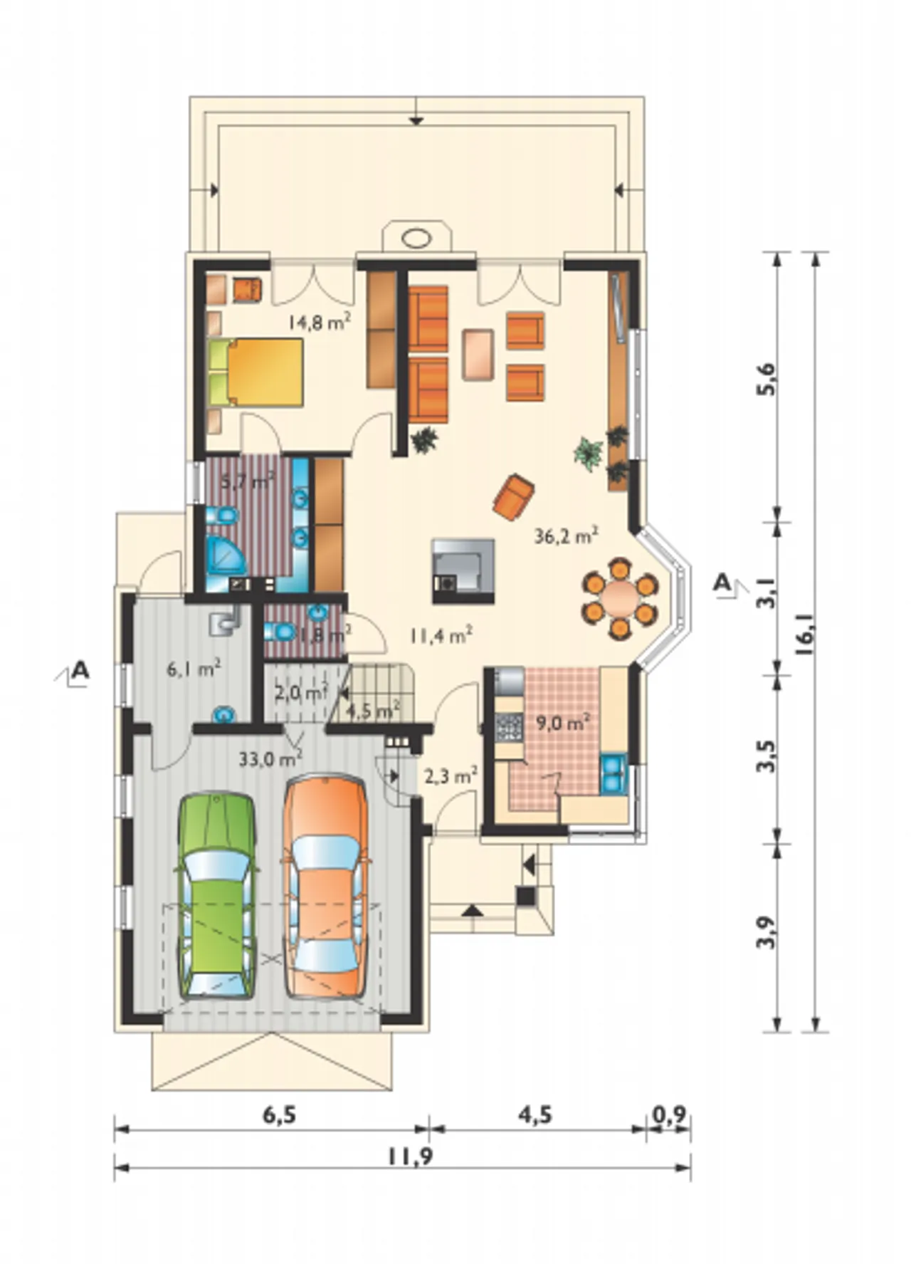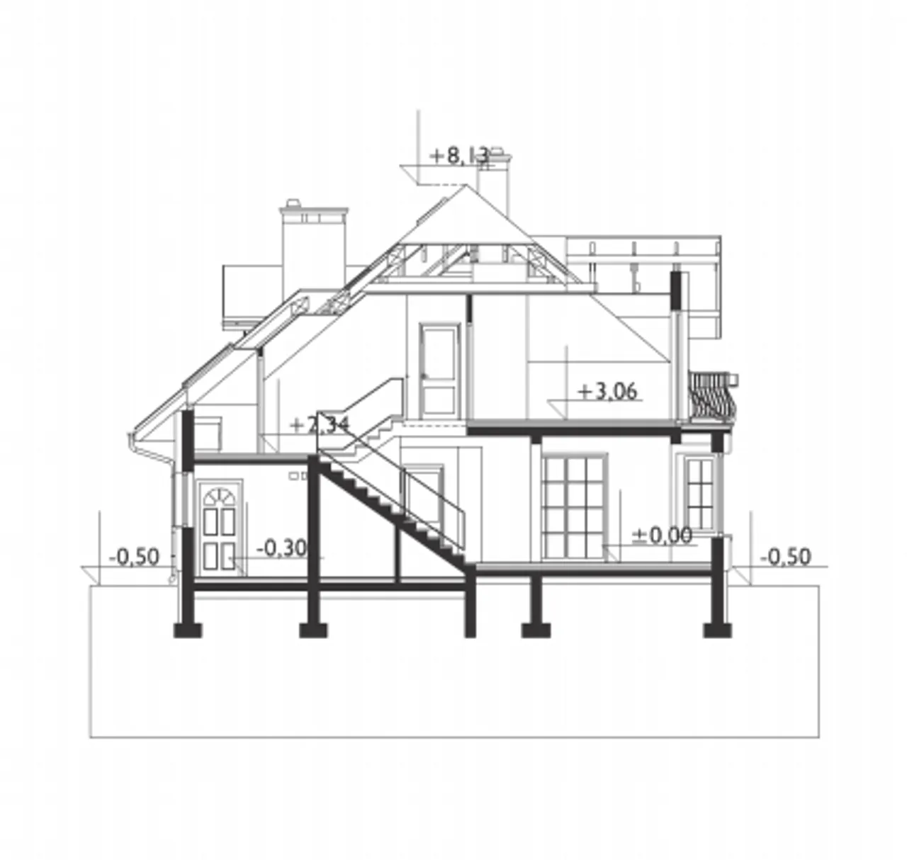 - elewacje - pokazują dokładny wygląd domu od frontu, z tyłu i z boków
