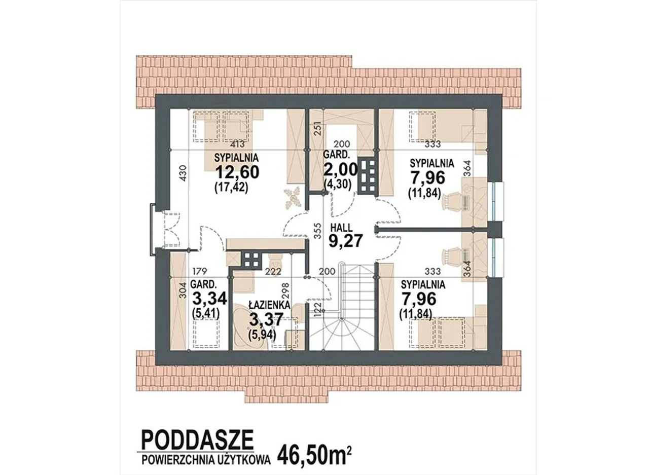 Wypełnij formularz i otrzymaj rysunki w pdf z dokładnymi wymiarami budynku i pomieszczeń (długość, szerokość, wysokość) dla projektu Hugo II z garażem 1-st. A