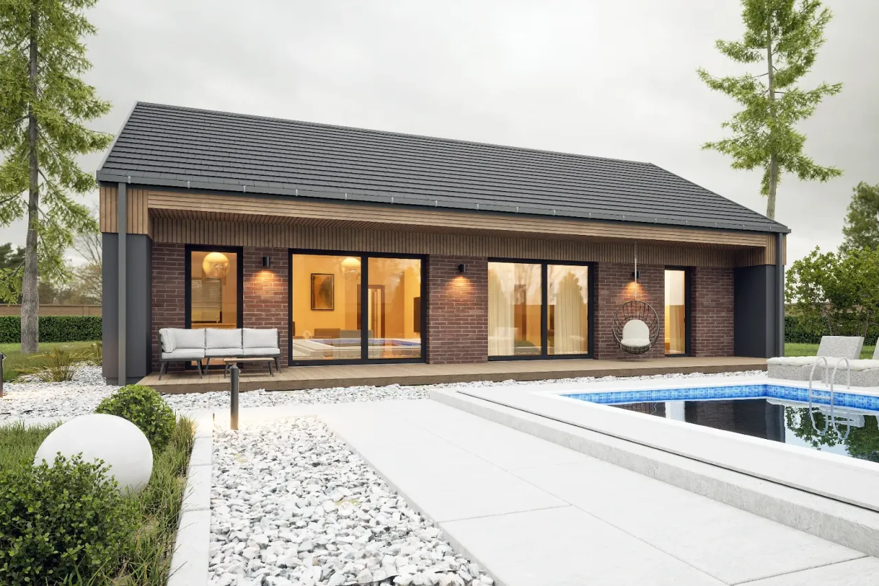 Projekt domu Hyzop III w wersji bez garażu B to prawdziwe arcydzieło architektury. Nowoczesna elewacja przyciąga wzrok swoim designem. Wnętrza są przestronne i zachwycają funkcjonalnością, tworząc idealne miejsce do życia w harmonii z naturą. Jednym z największych atutów są doskonale doświetlone pomieszczenia, dzięki szerokim oknom, które wpuszczają mnóstwo naturalnego światła. Taras zaprasza do odpoczynku po całym dniu. Elegancka bryła budynku zdecydowanie przyciąga uwagę. Podoba mi się, jak prostota łączy się tu z elegancją. Styl tego domu jest naprawdę wyjątkowy. Serio rozważam zakup projektu i budowę tego domu.