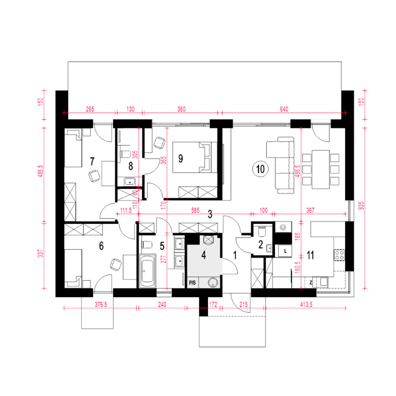 Wypełnij formularz i otrzymaj rysunki w pdf z dokładnymi wymiarami budynku i pomieszczeń (długość, szerokość, wysokość) dla projektu Hyzop III bez garażu B