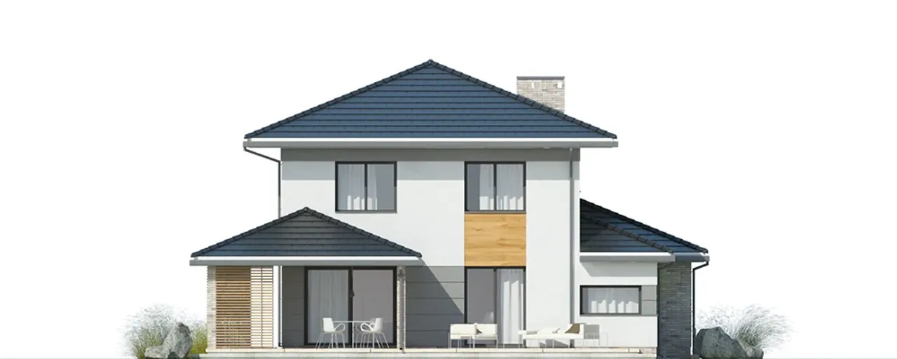 Projekt domu jednorodzinnego z pięcioma pokojami oraz nowoczesnym dwustanowiskowym garażem to propozycja dla osób ceniących estetykę, funkcjonalność i solidność konstrukcji. Postaw na sprawdzone rozwiązania budowlane, zyskaj dom pełen światła i przestrzeni - idealny dla aktywnej rodziny inwestującej we własną wygodę na lata.