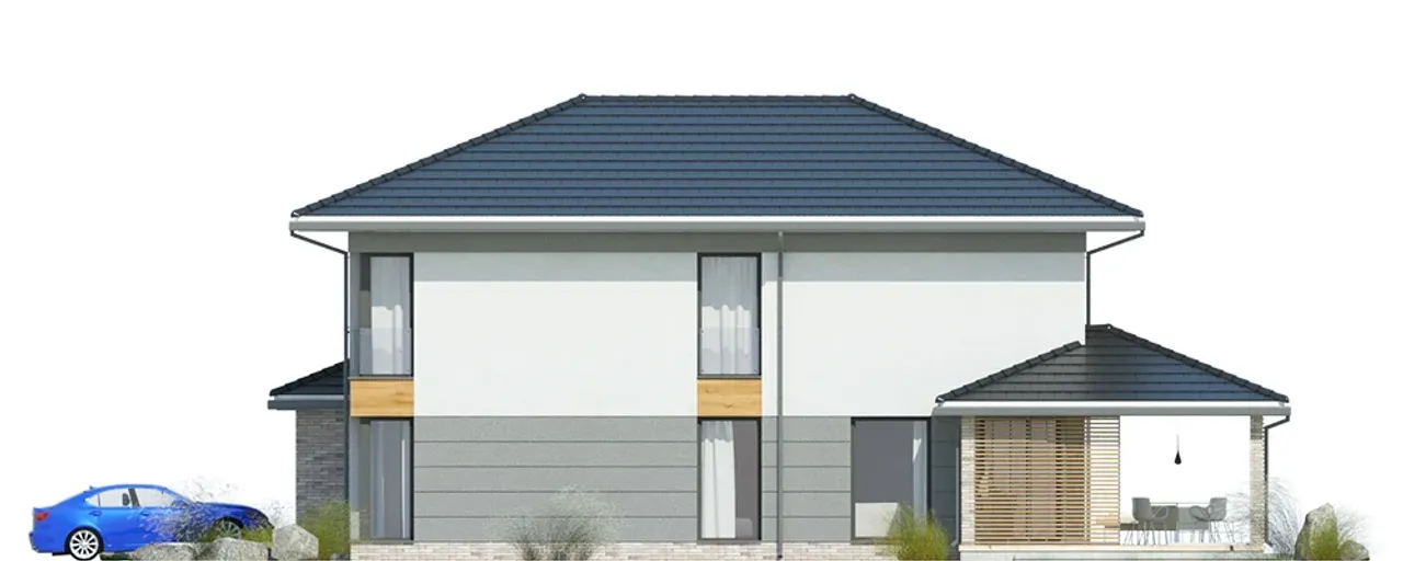 Projekt ten doskonale sprawdzi się zarówno na podmiejskiej działce, jak i wśród niskiej zabudowy miejskiej. Pięć pokoi daje szerokie pole do indywidualnej aranżacji i stwarza idealne warunki do życia dla rodzin z dziećmi, osób pracujących w domu czy miłośników aktywności w ogrodzie.
