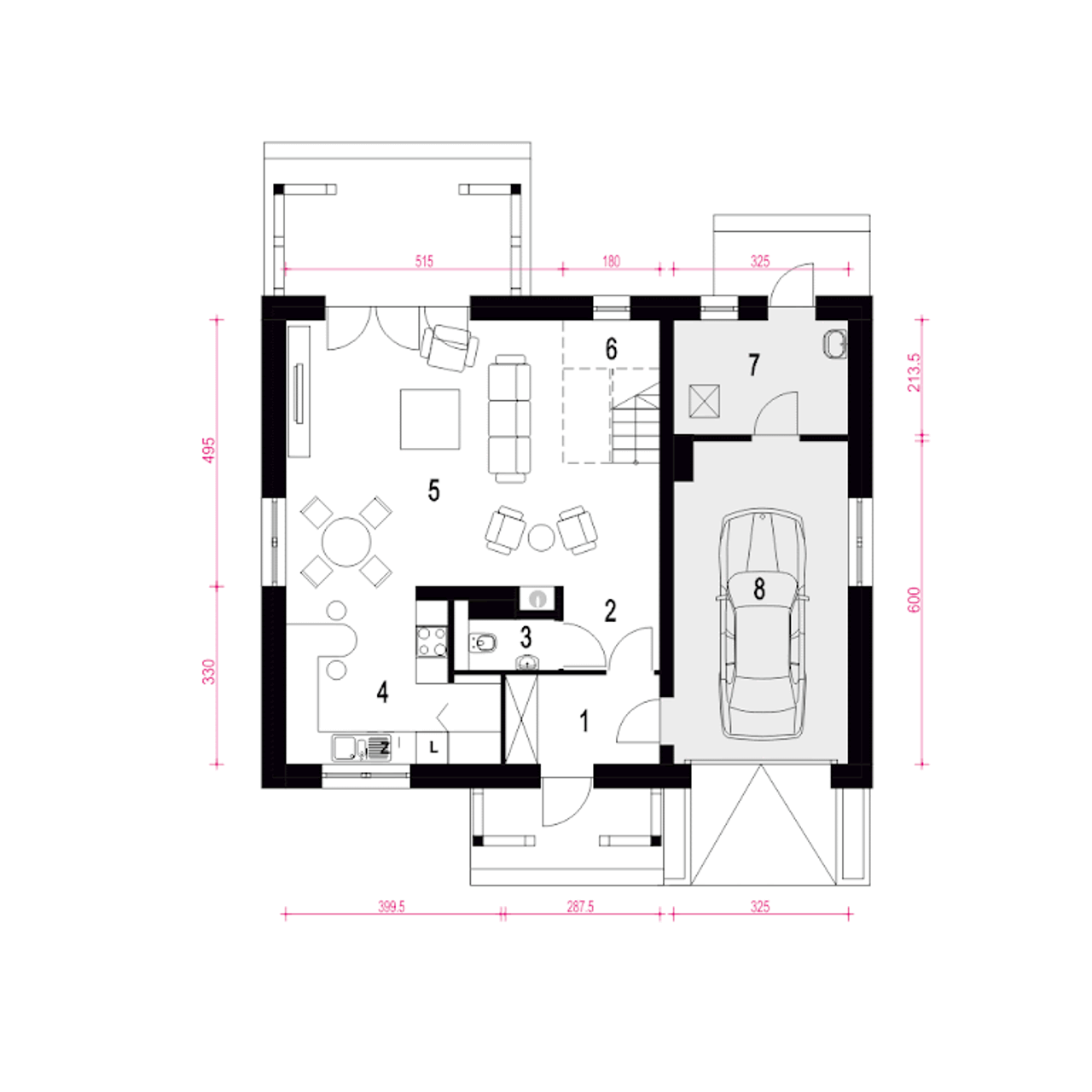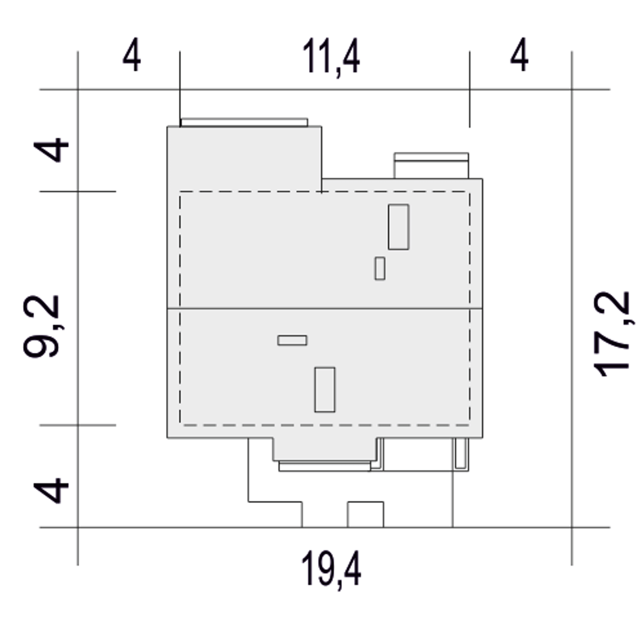 Wypełnij formularz i otrzymaj rysunki w pdf z dokładnymi wymiarami budynku i pomieszczeń (długość, szerokość, wysokość) dla projektu Iga styl z garażem 1-st. A