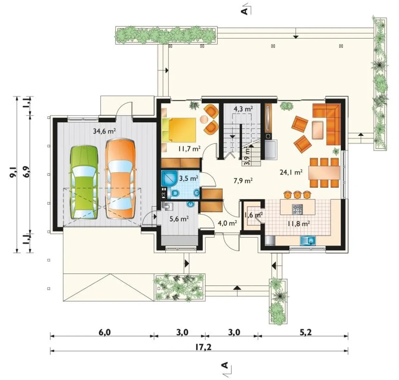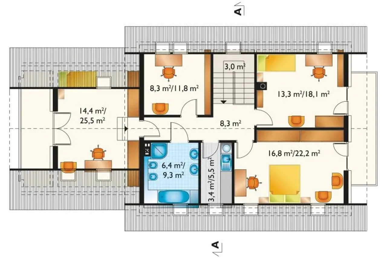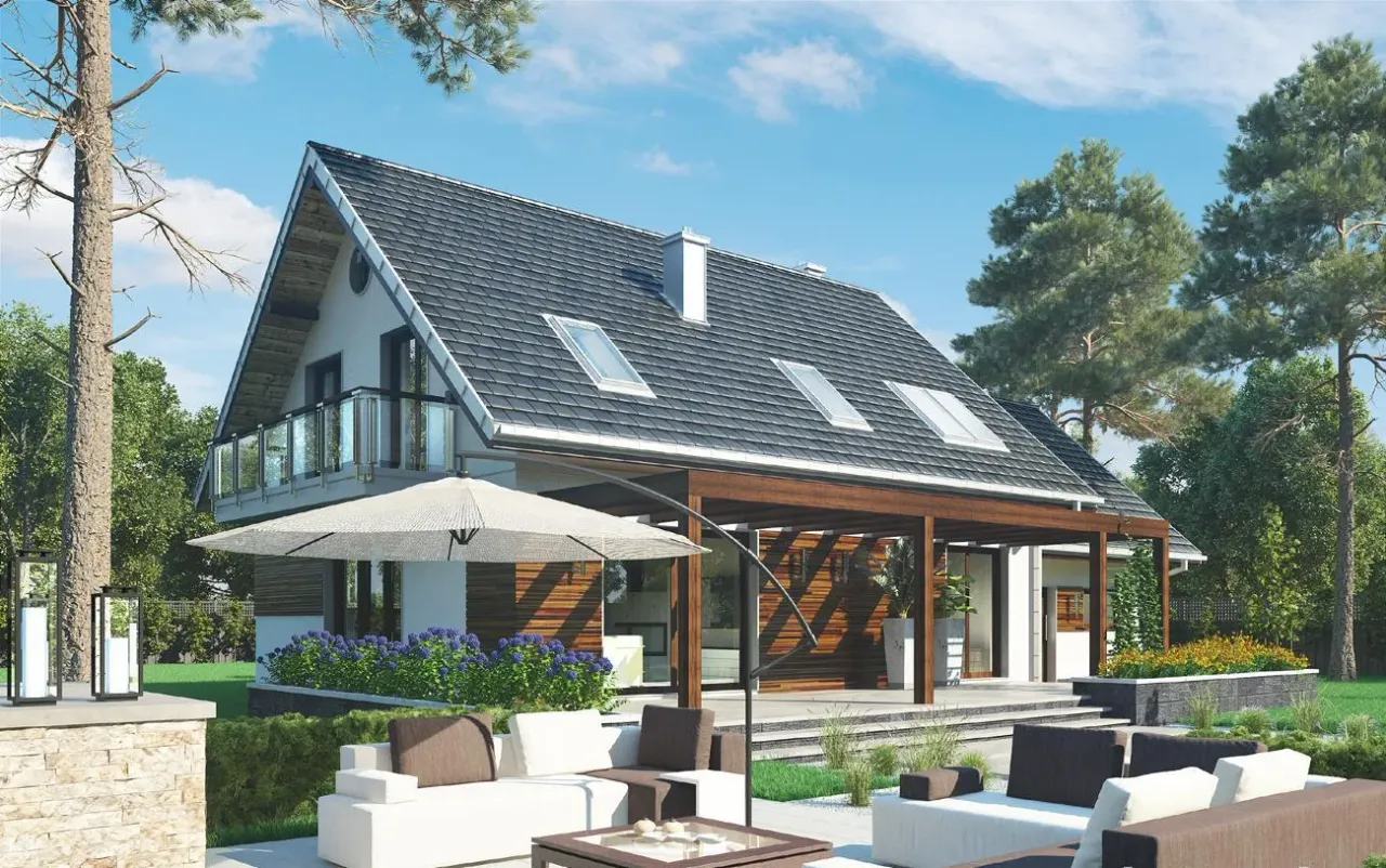 - elewacje - pokazują dokładny wygląd domu od frontu, z tyłu i z boków