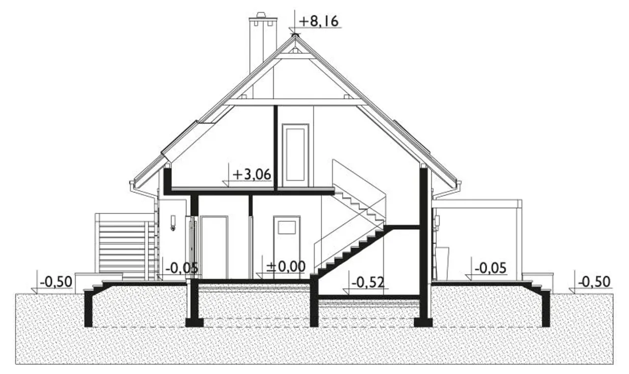 - przekroje - pokazują wszystkie elementy budynku po przecięciu go wzdłuż lub w poprzek od dachu do fundamentów tj. warstwy podłogi, stropów i dachu