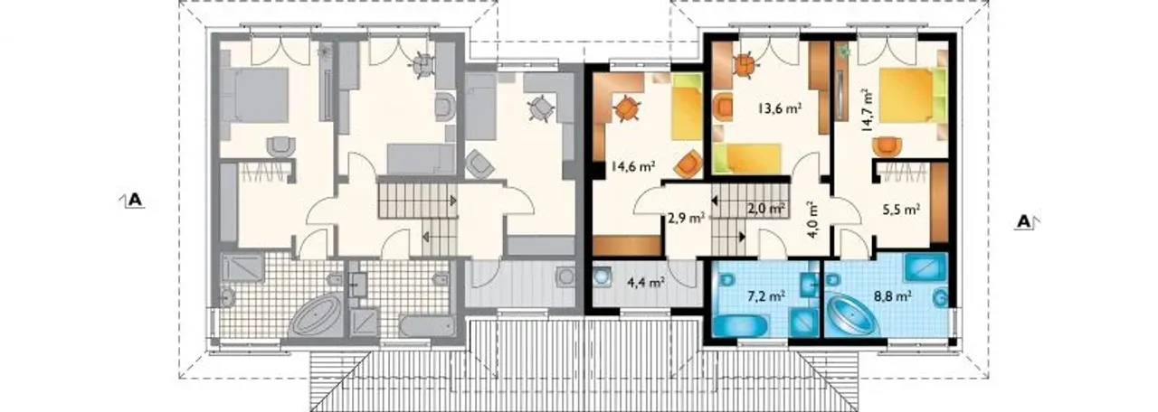 - elewacje - pokazują dokładny wygląd domu od frontu, z tyłu i z boków