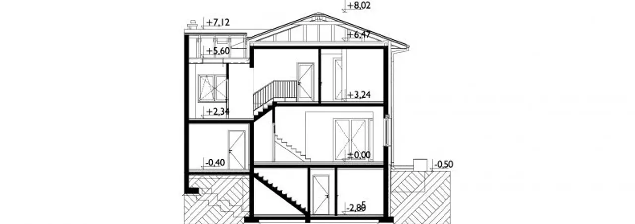 - przekroje - pokazują wszystkie elementy budynku po przecięciu go wzdłuż lub w poprzek od dachu do fundamentów tj. warstwy podłogi, stropów i dachu